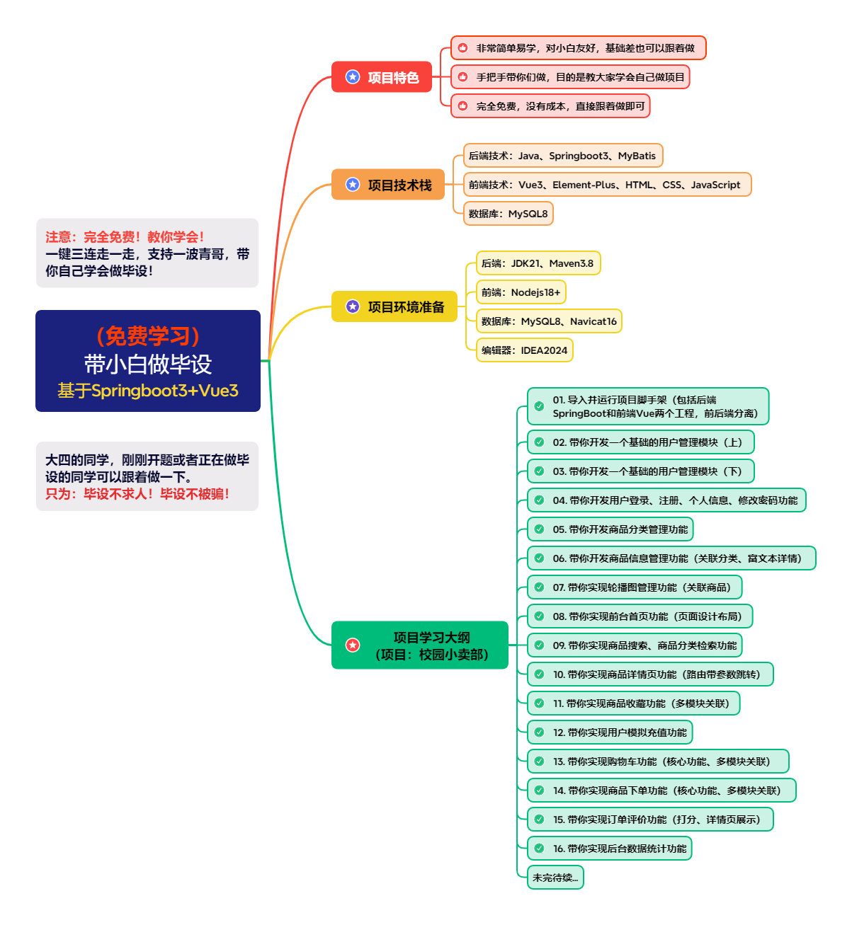 - 教程会提供给你一个干净的脚手架,让你可以快速开发毕设项目