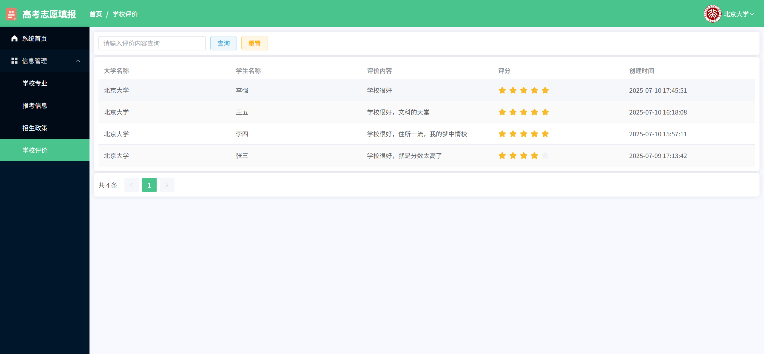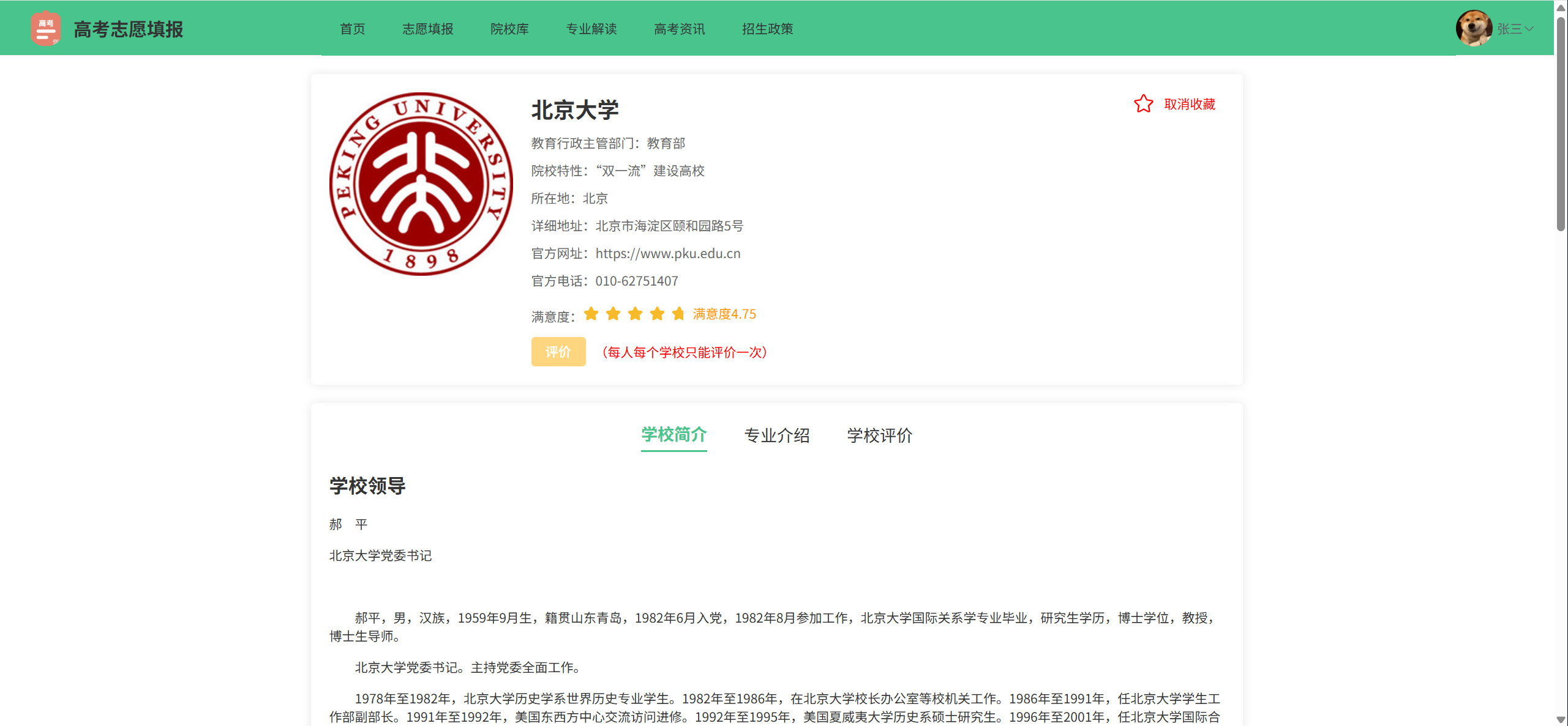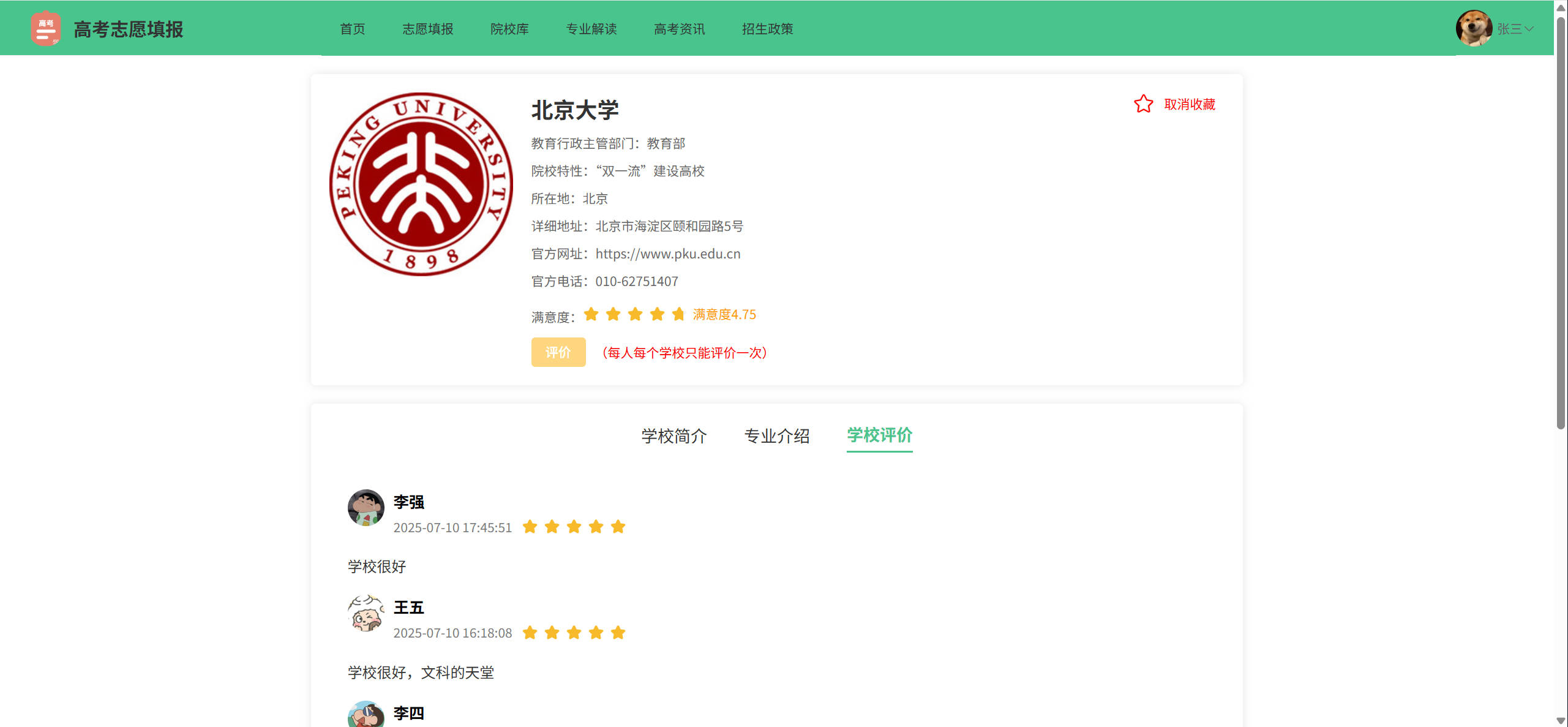 我的收藏:浏览当前登录学生收藏的学校信息,可以取消收藏