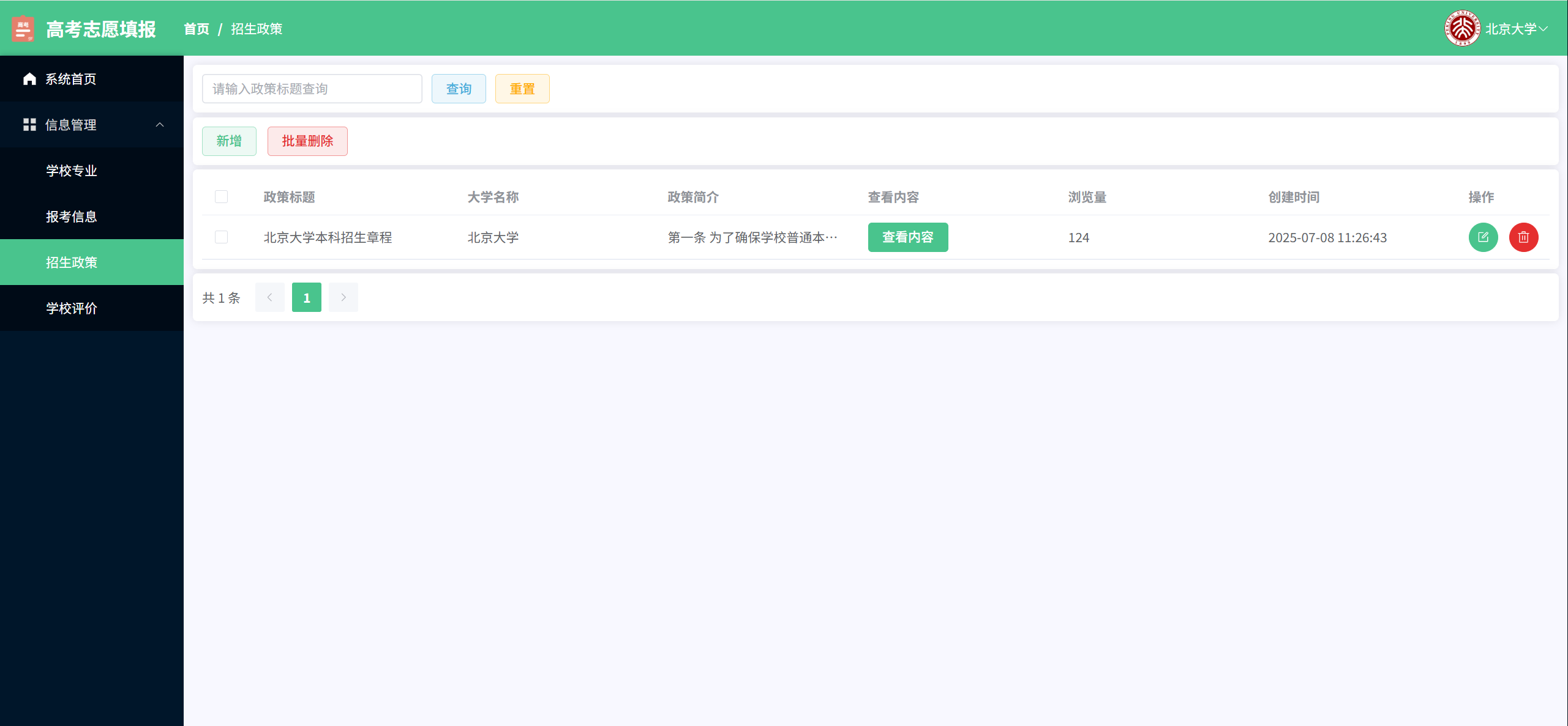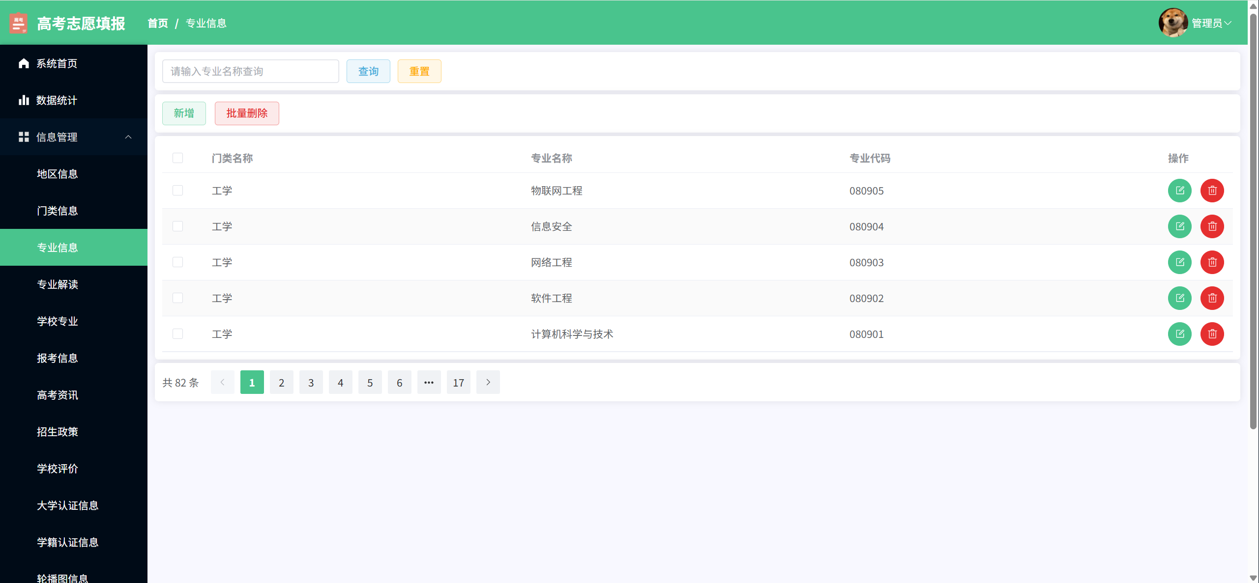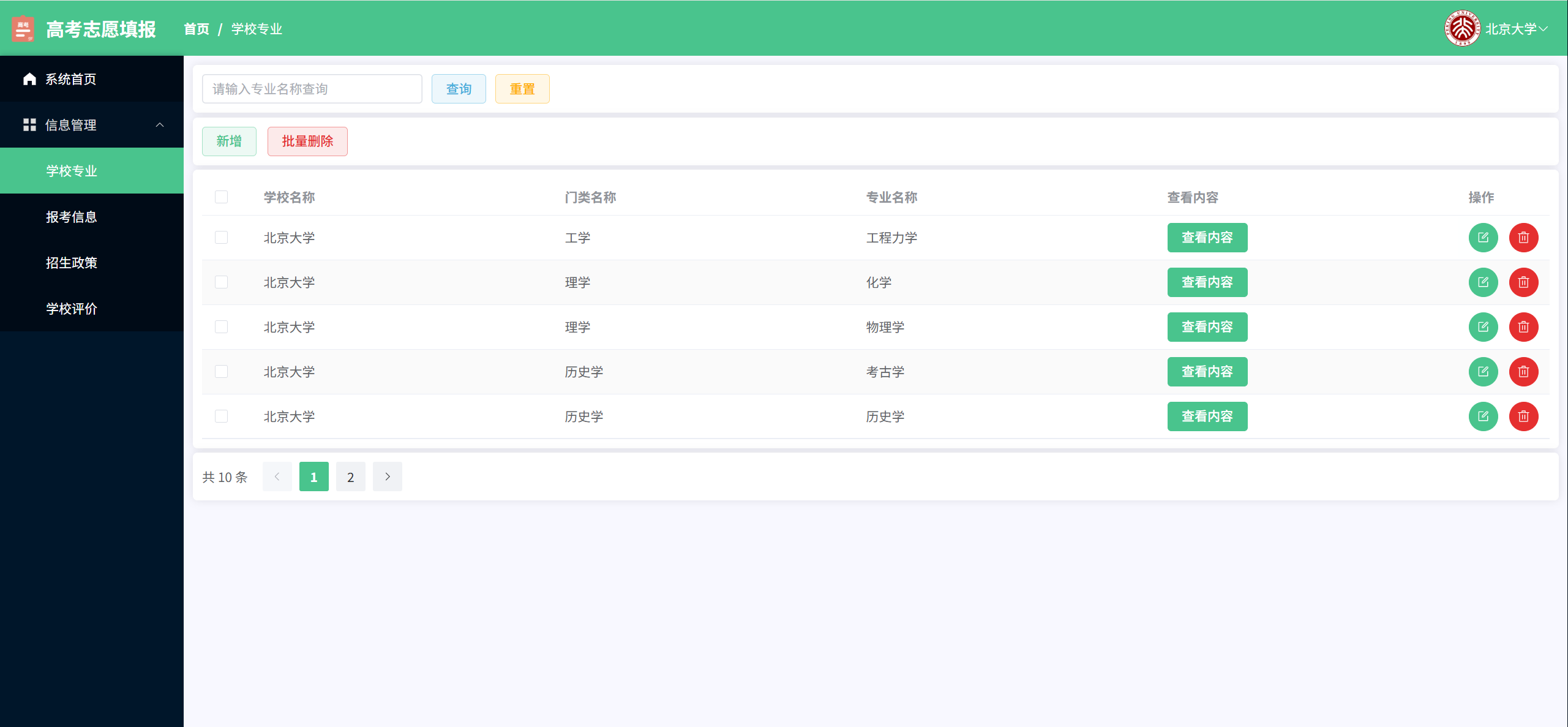 学院专业信息:管理不同学校的门类专业信息,可以有该学校该专业的特点(专业也有富文本展示很一些这个学校的专业信息)(因为不同学校可能有不同的门类和专业类)