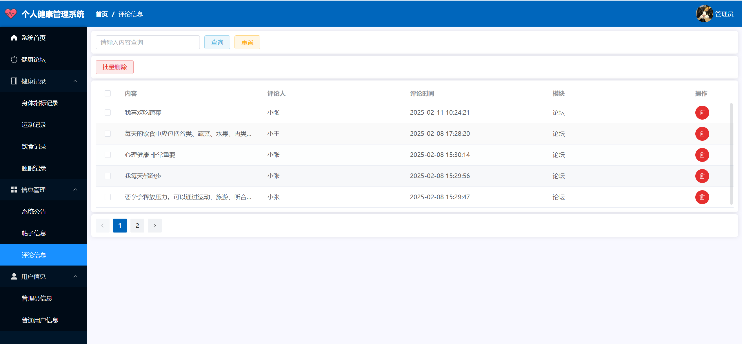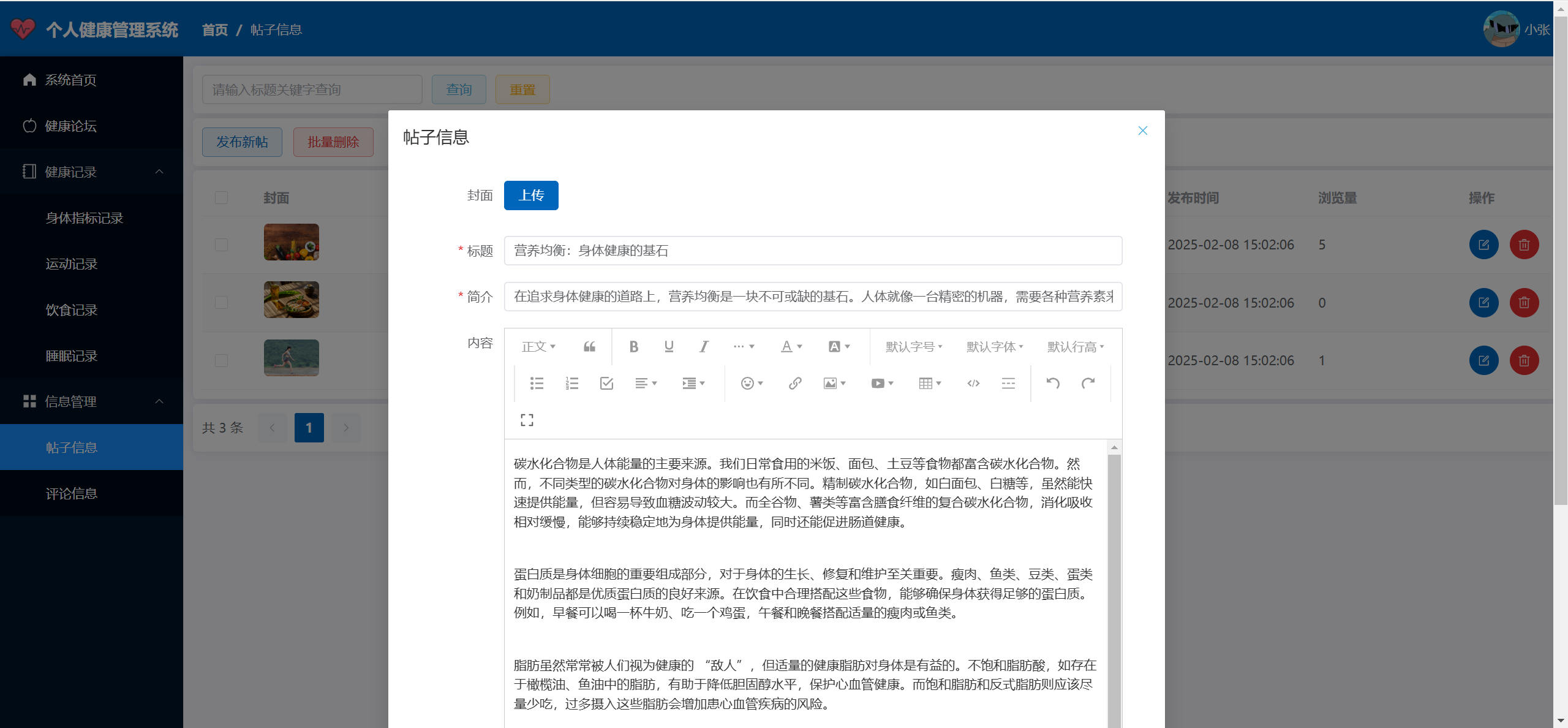 健康论坛:查看所有人发布的论坛帖子、可以评论帖子、回复评论