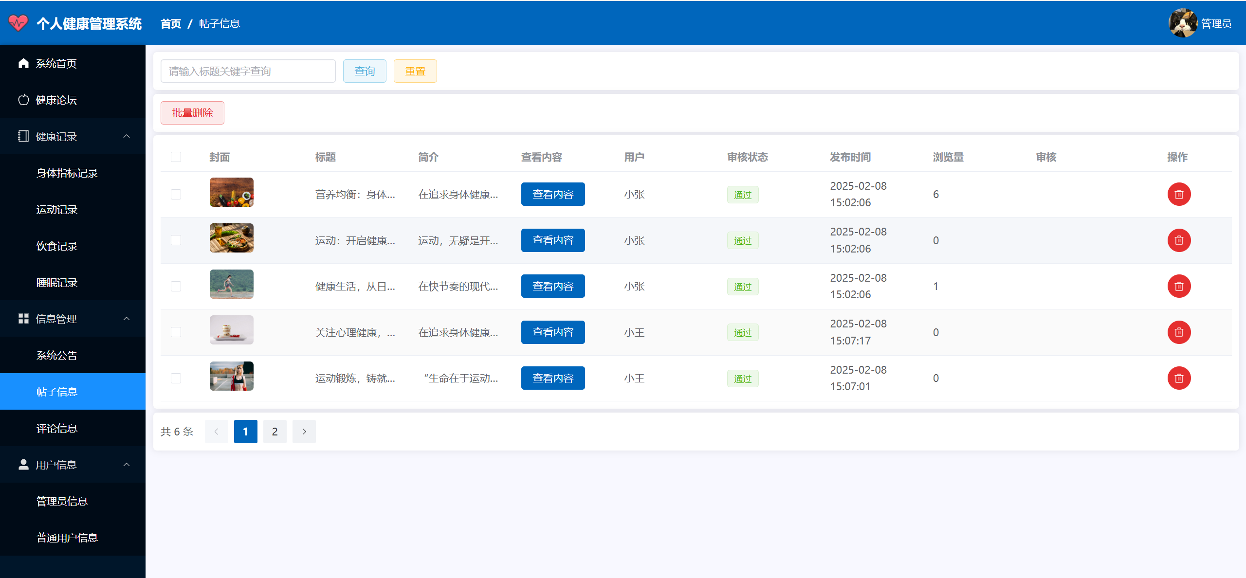 帖子信息:对论坛个人发布的帖子进行增删改查