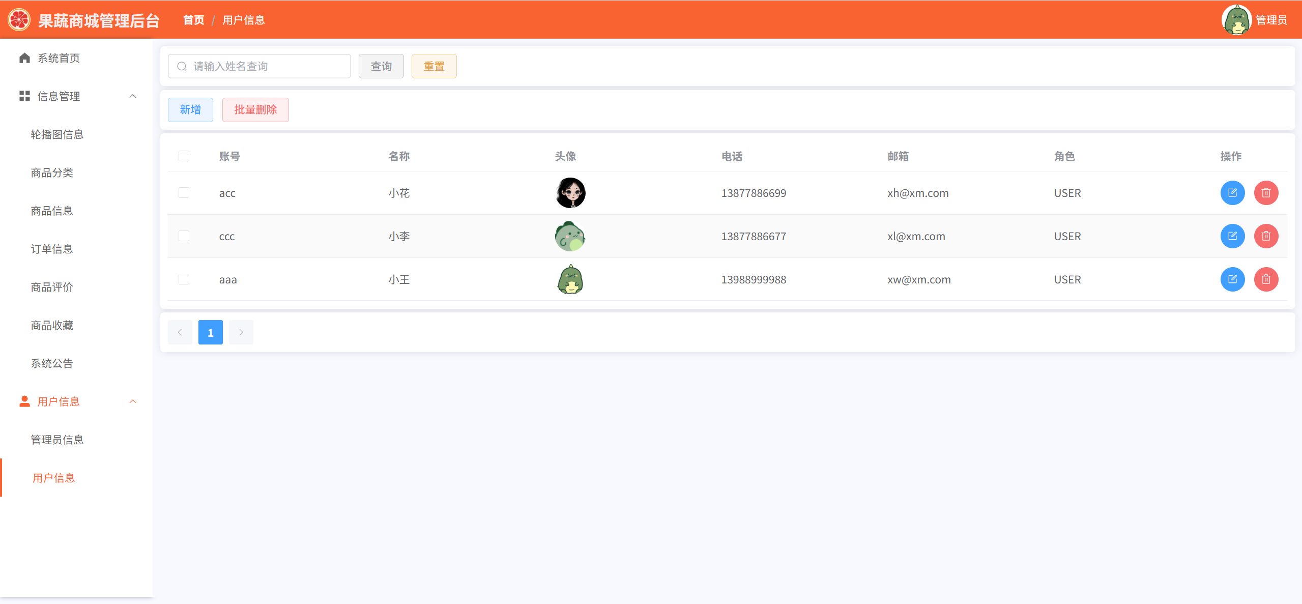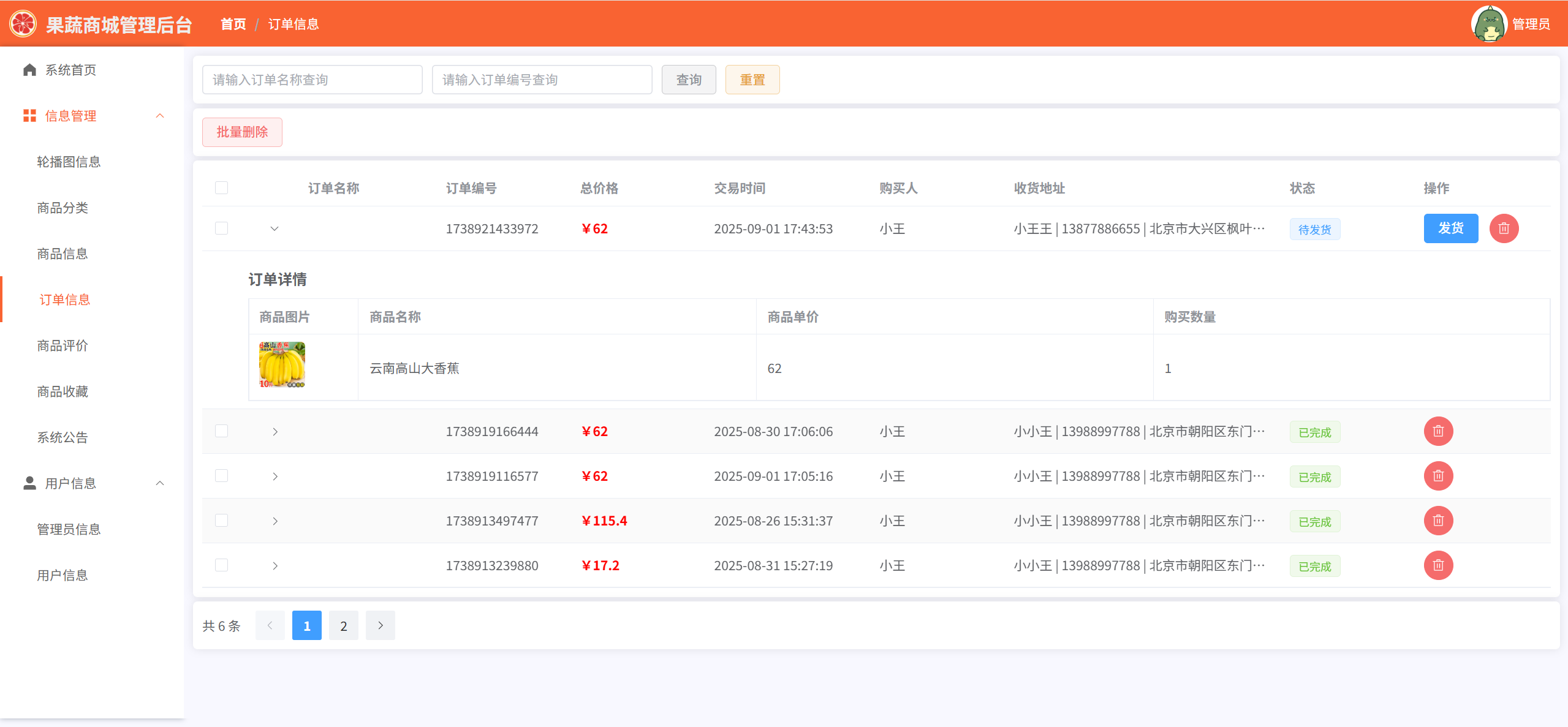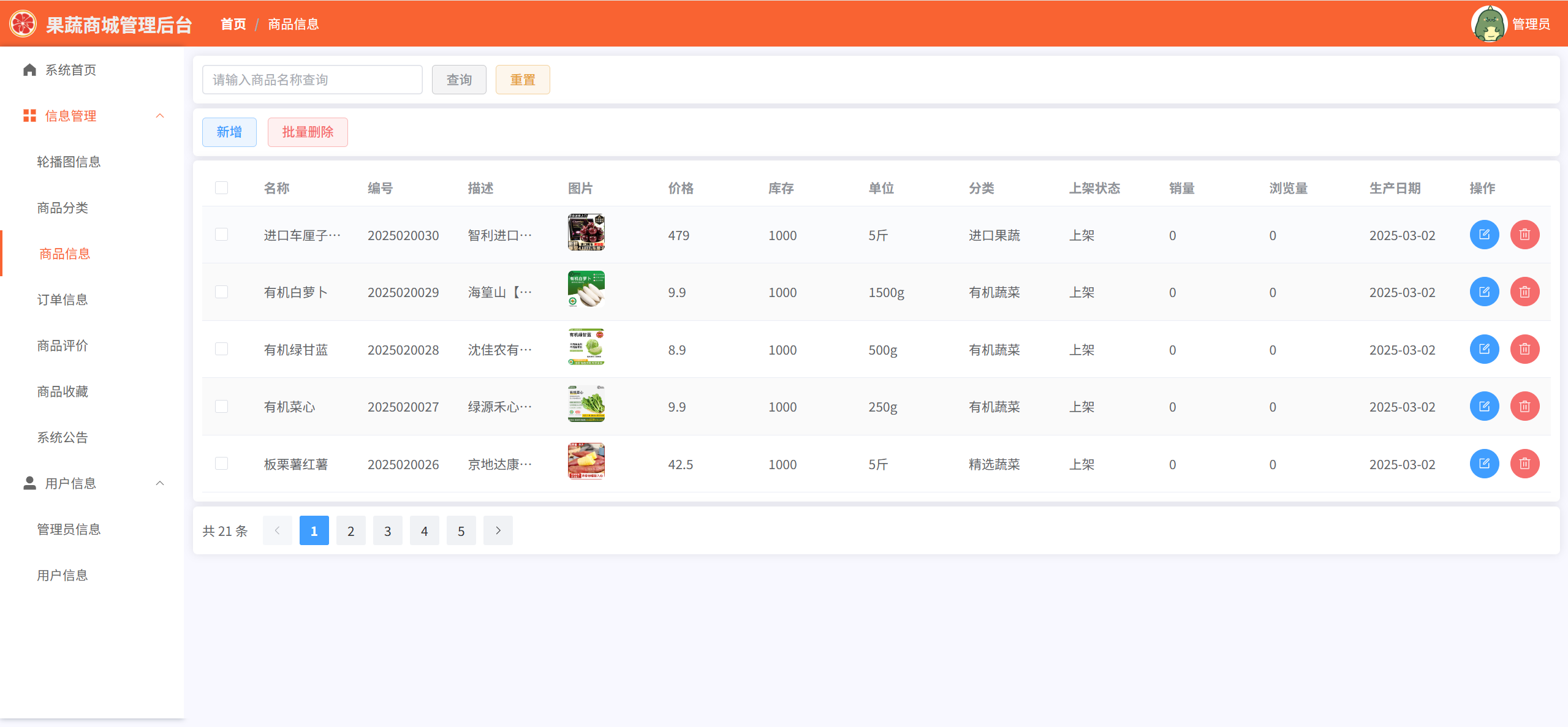 商城首页:轮播图宣传、热销商品(按销量从高往低排序展示 5 个)、精选果蔬