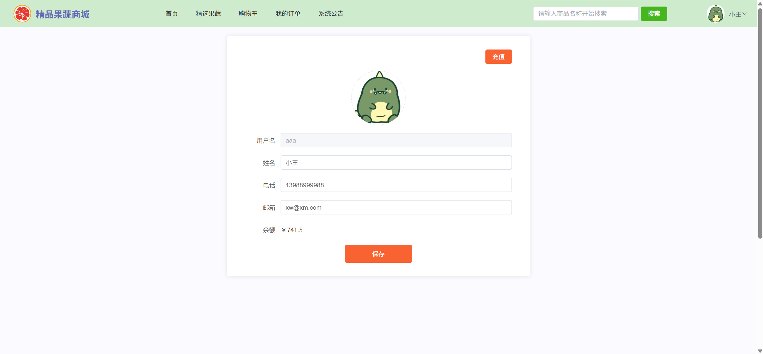 个人信息:用户可查看和编辑个人信息,可以充值余额