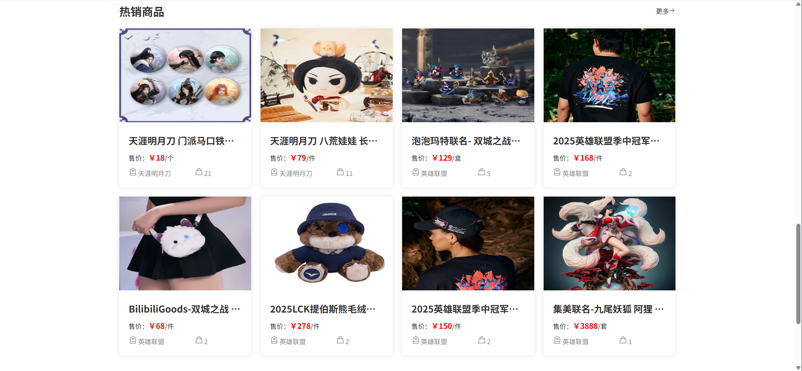 周边商品:浏览所有周边商品信息,有详情页,到详情页购买商品
