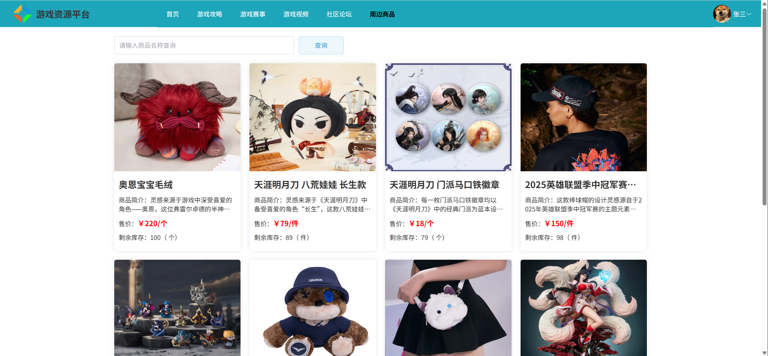 周边商品:管理所有游戏周边商品信息,有商品详情