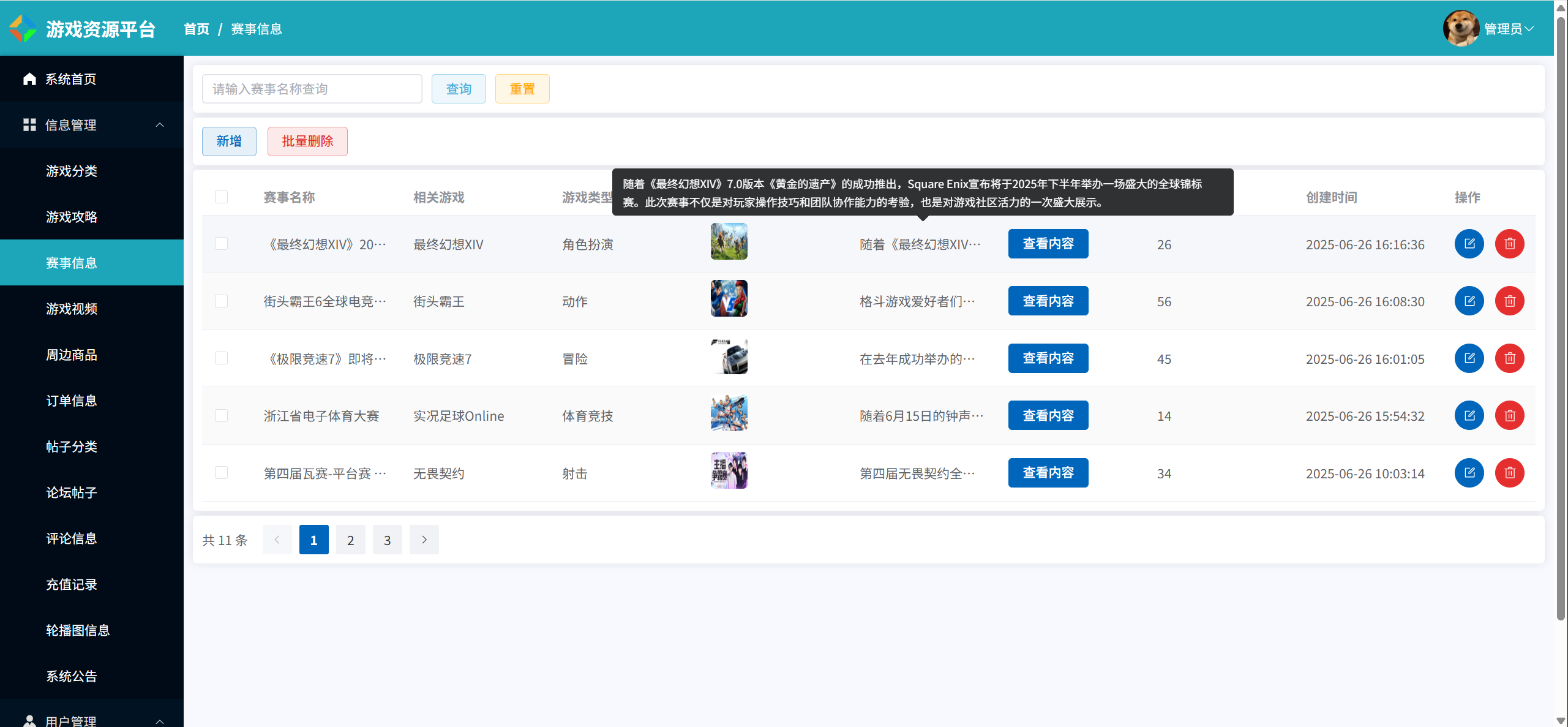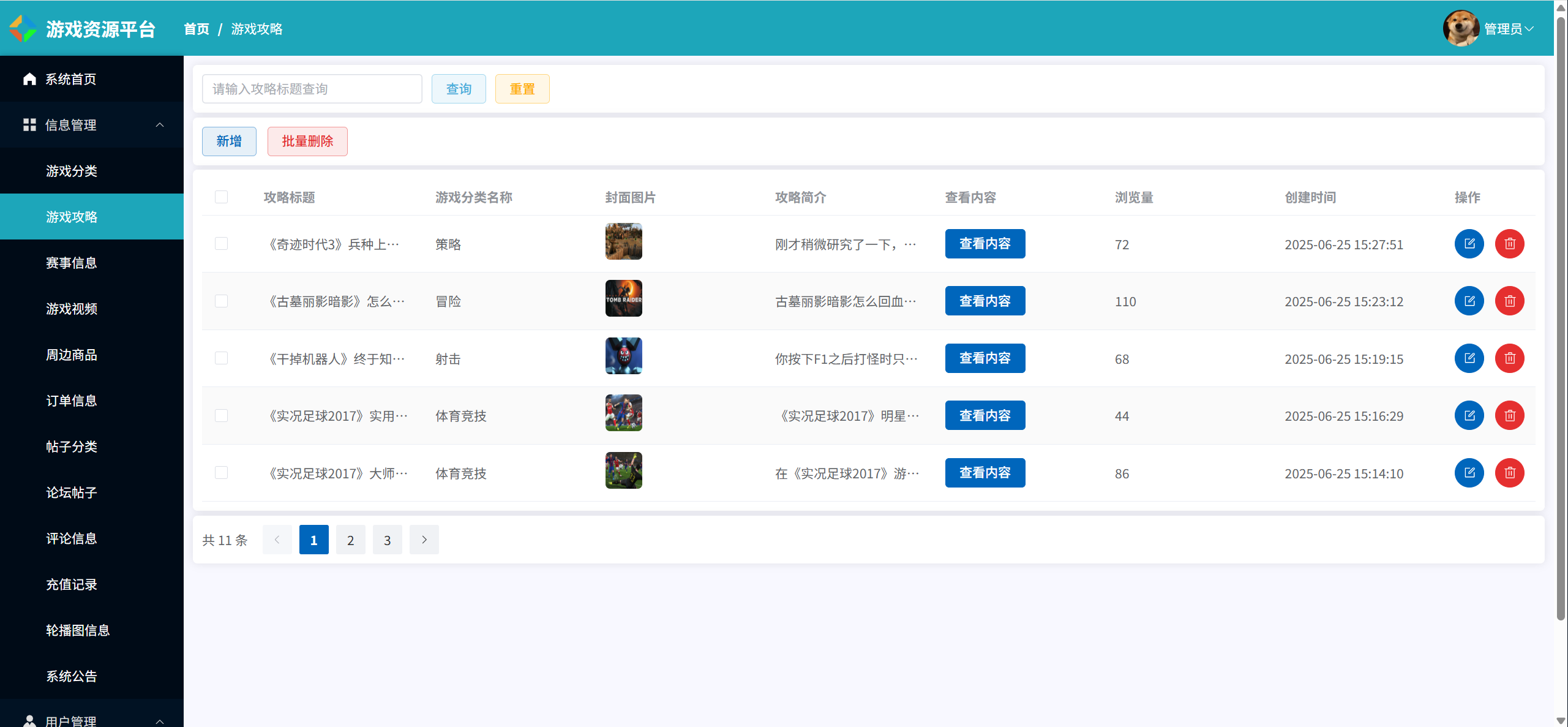 游戏分类:管理所有游戏分类信息(游戏攻略、游戏赛事、游戏视频、论坛帖子都可以选择)