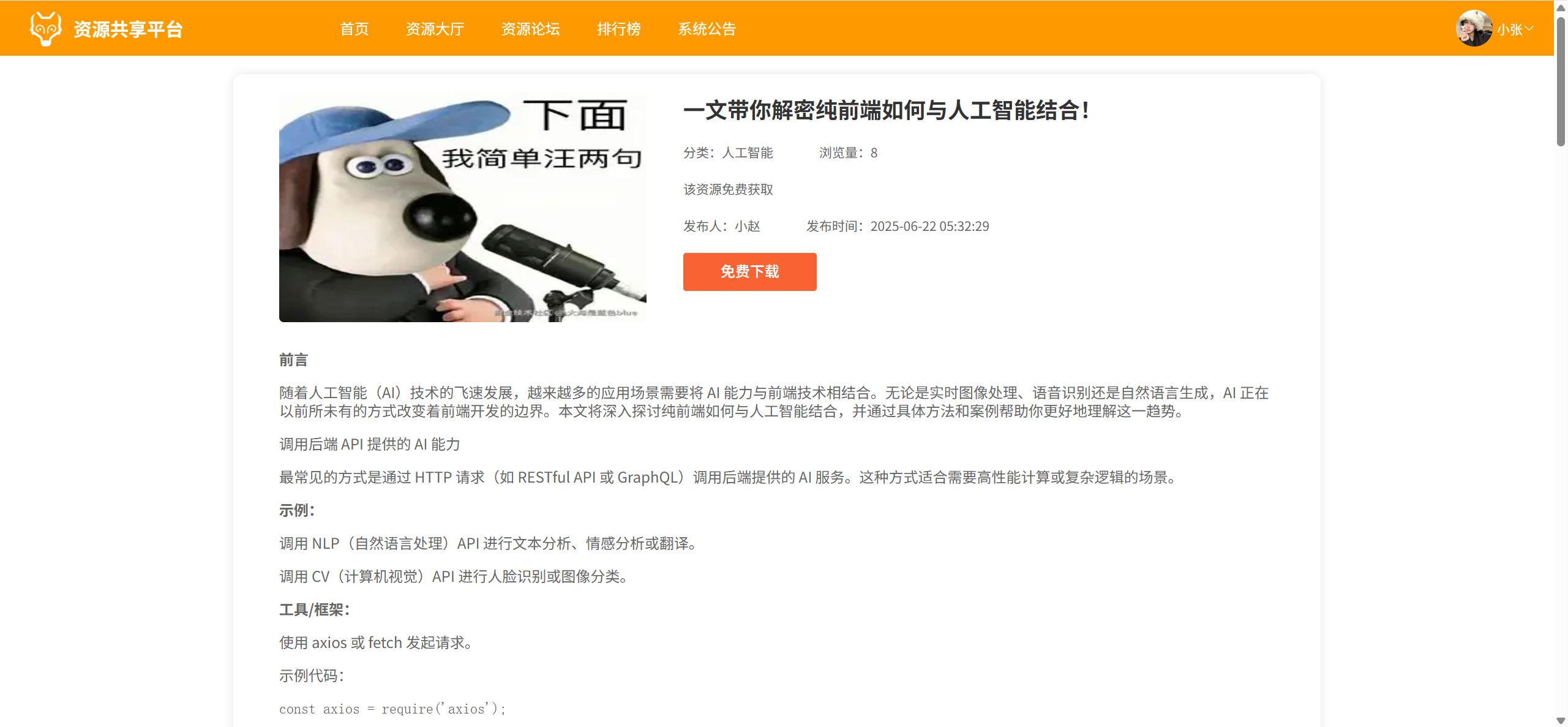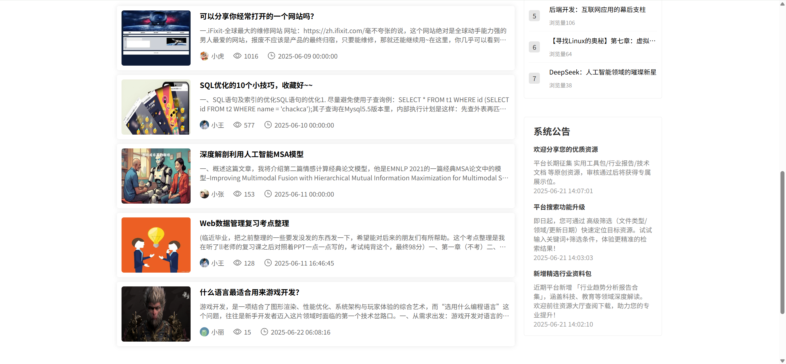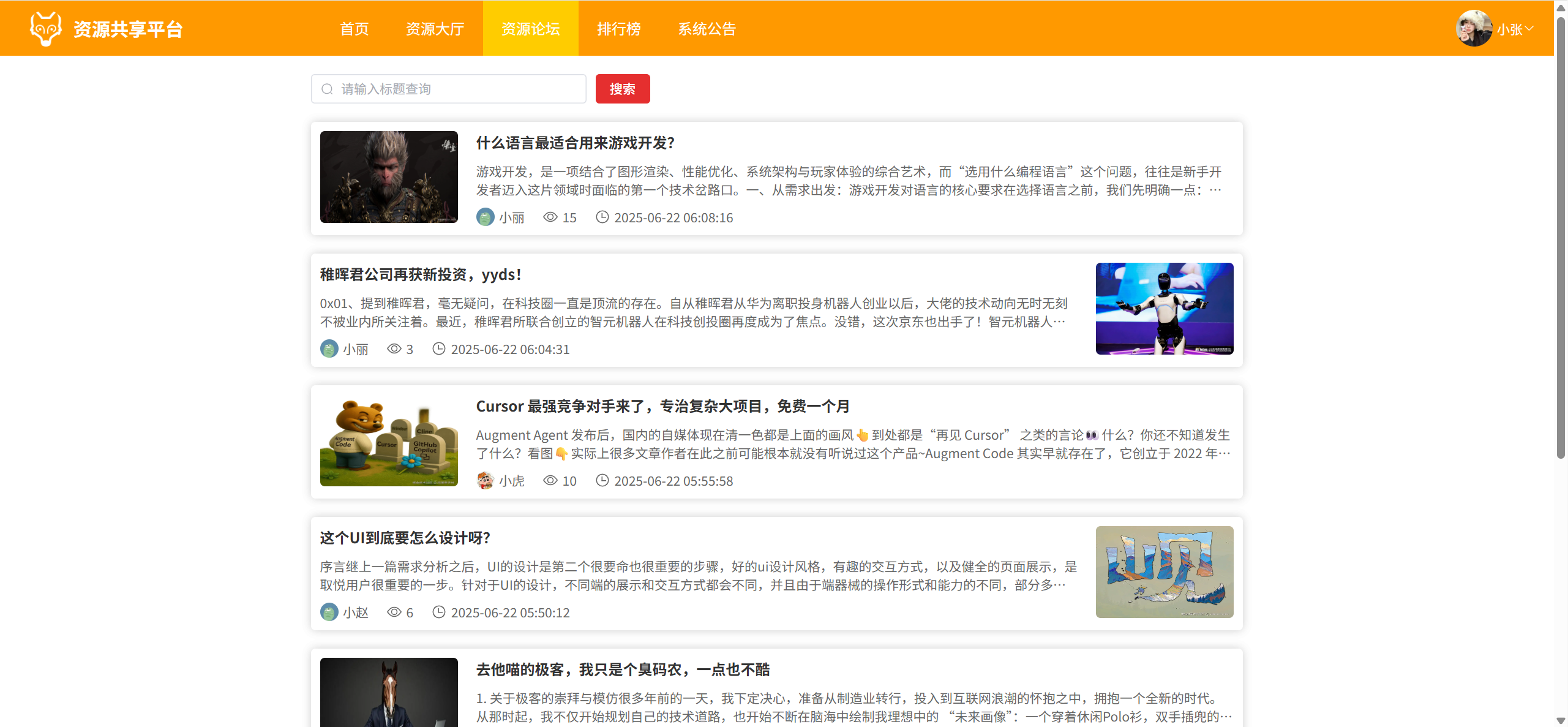 资源论坛:分页浏览所有审核通过的帖子、可搜索,点击进入帖子详情页,帖子详情页下方可评论