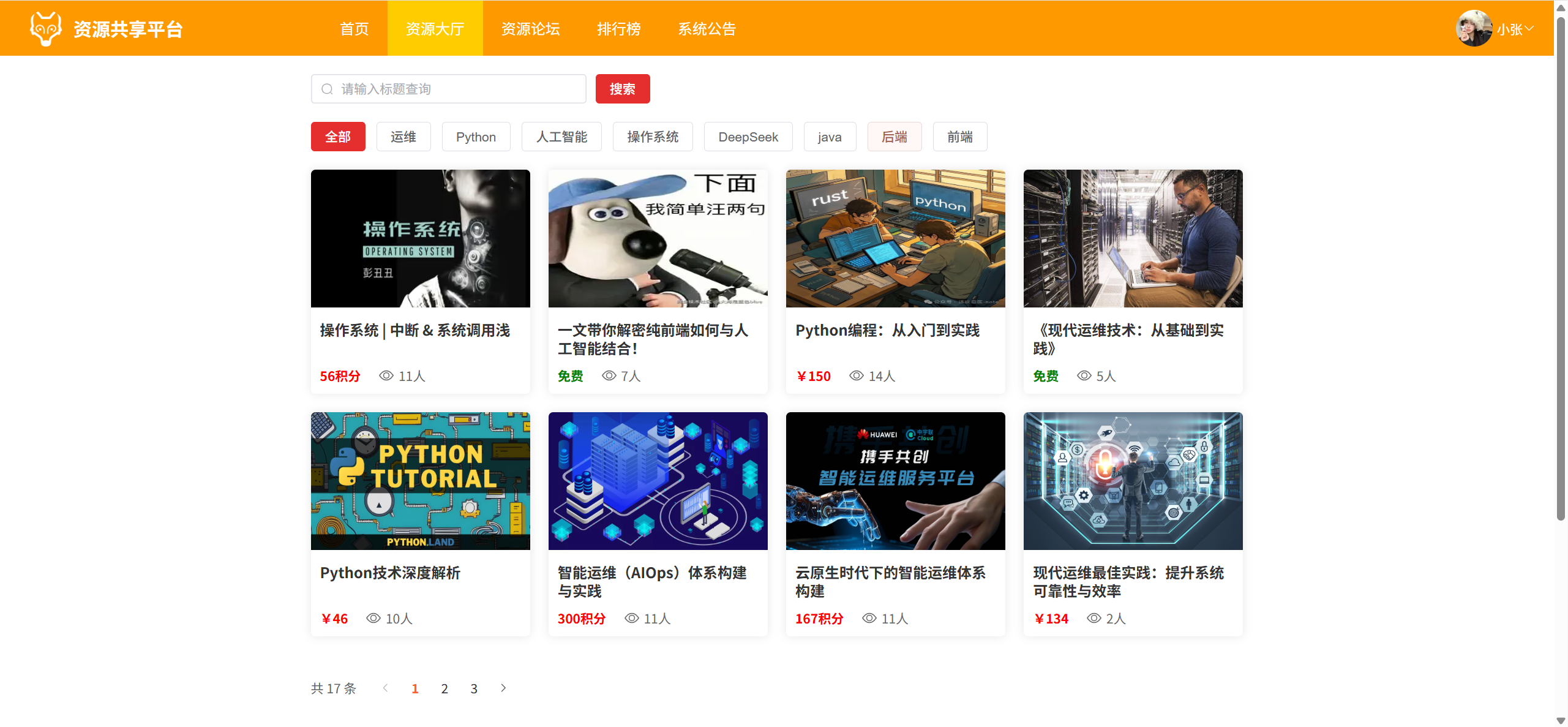 资源大厅:分页浏览所有资源、可搜索,资源详情(可购买资源)