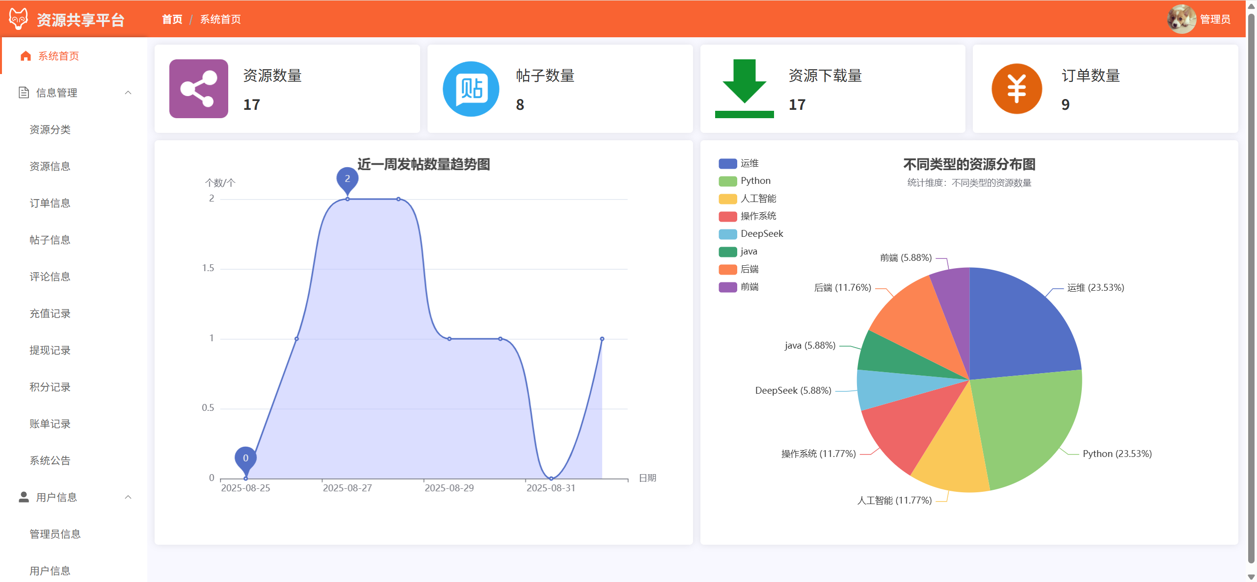 系统首页:查看平台数据统计信息