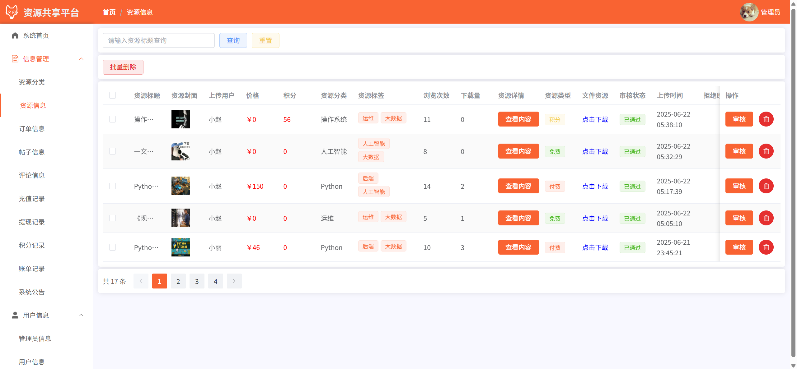 上传的资源:管理个人上传的资源