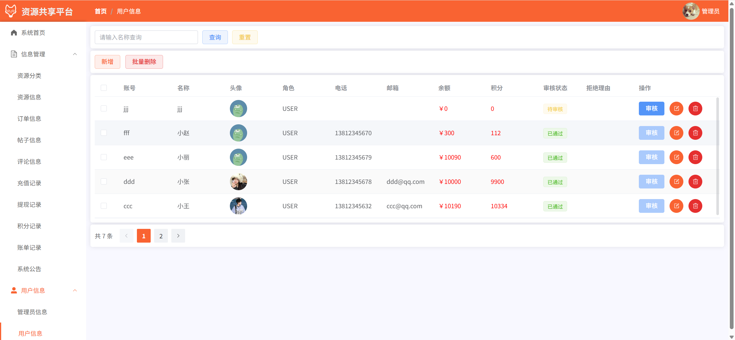 用户信息:管理用户信息