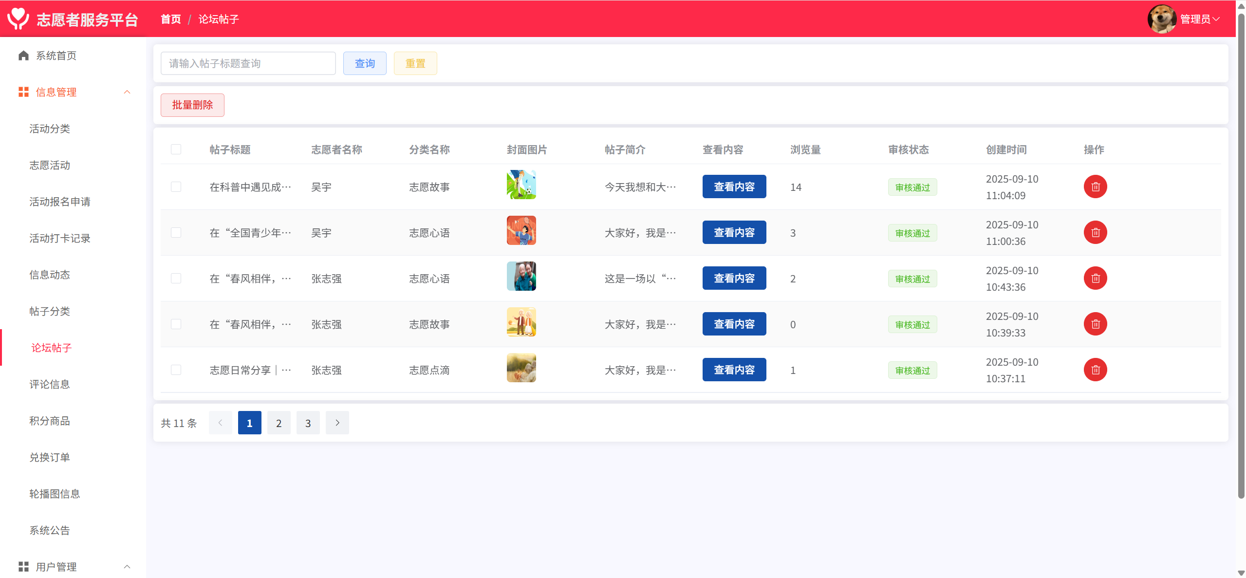 社区论坛:审核由志愿者发布的帖子信息,只有审核通过的才会展示在社区论坛里