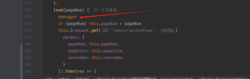 如果前端debugger不生效,你可以在对应位置用 console.log('xxxx') 来在控制台打印一下信息来排查。后端断点就不用我多说了吧,debug模式启动项目,在代码左侧就可以直接点一下出现断点。