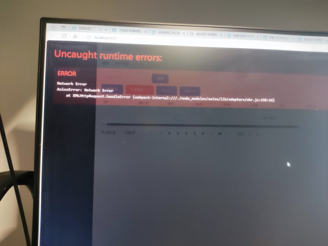 你后台springboot项目工程,确定已经启动了吗???所以前端、后端两个服务都要启动的,遇到这个问题基本上都是后端的Springboot工程压根就没启动呢!