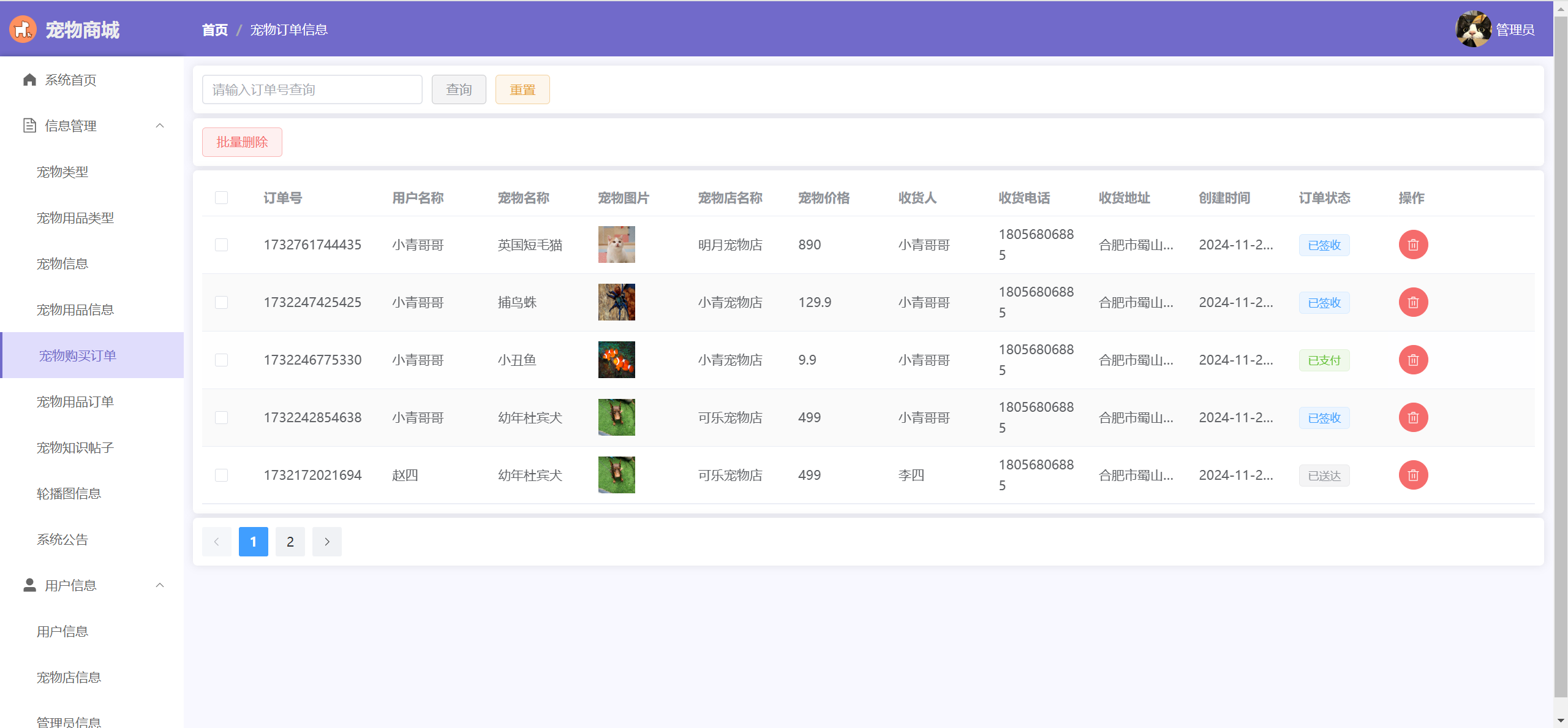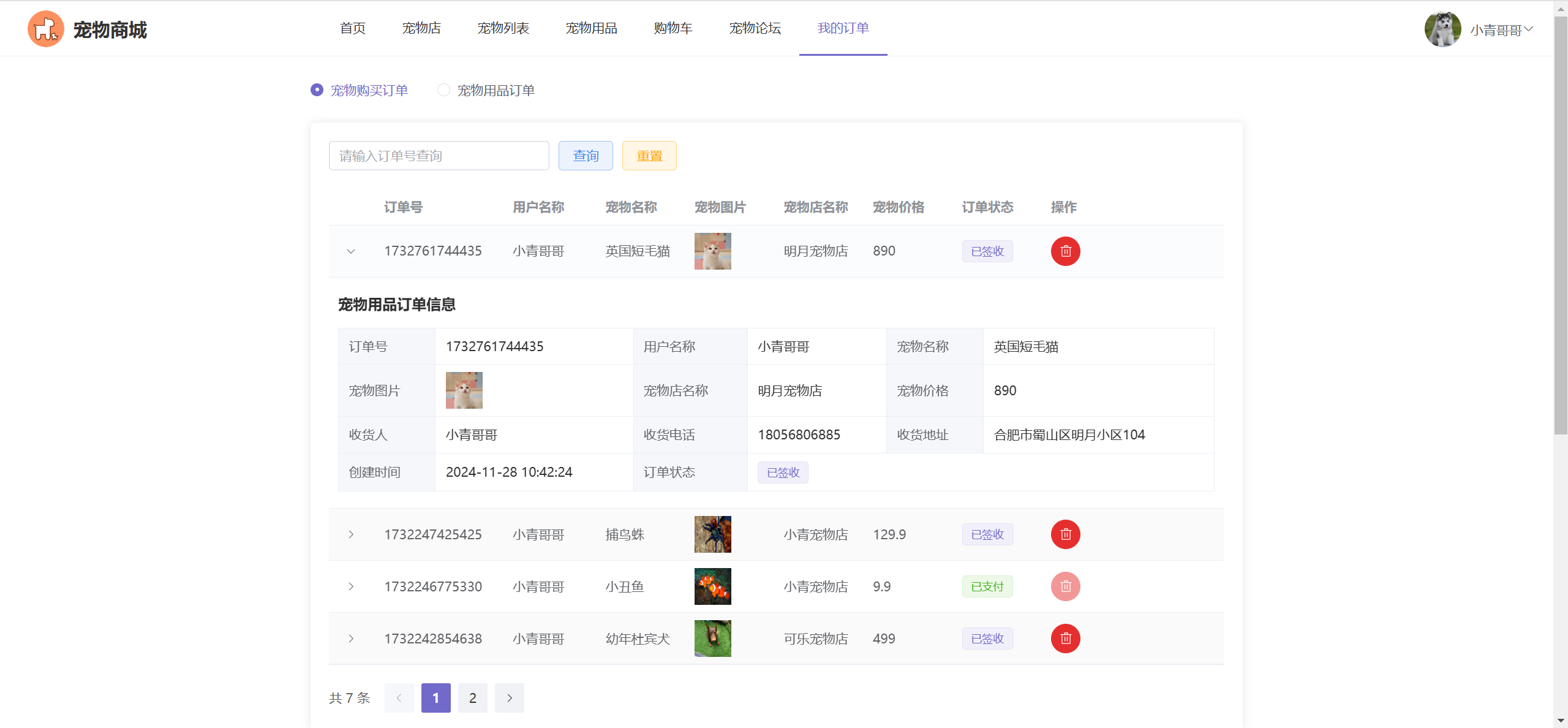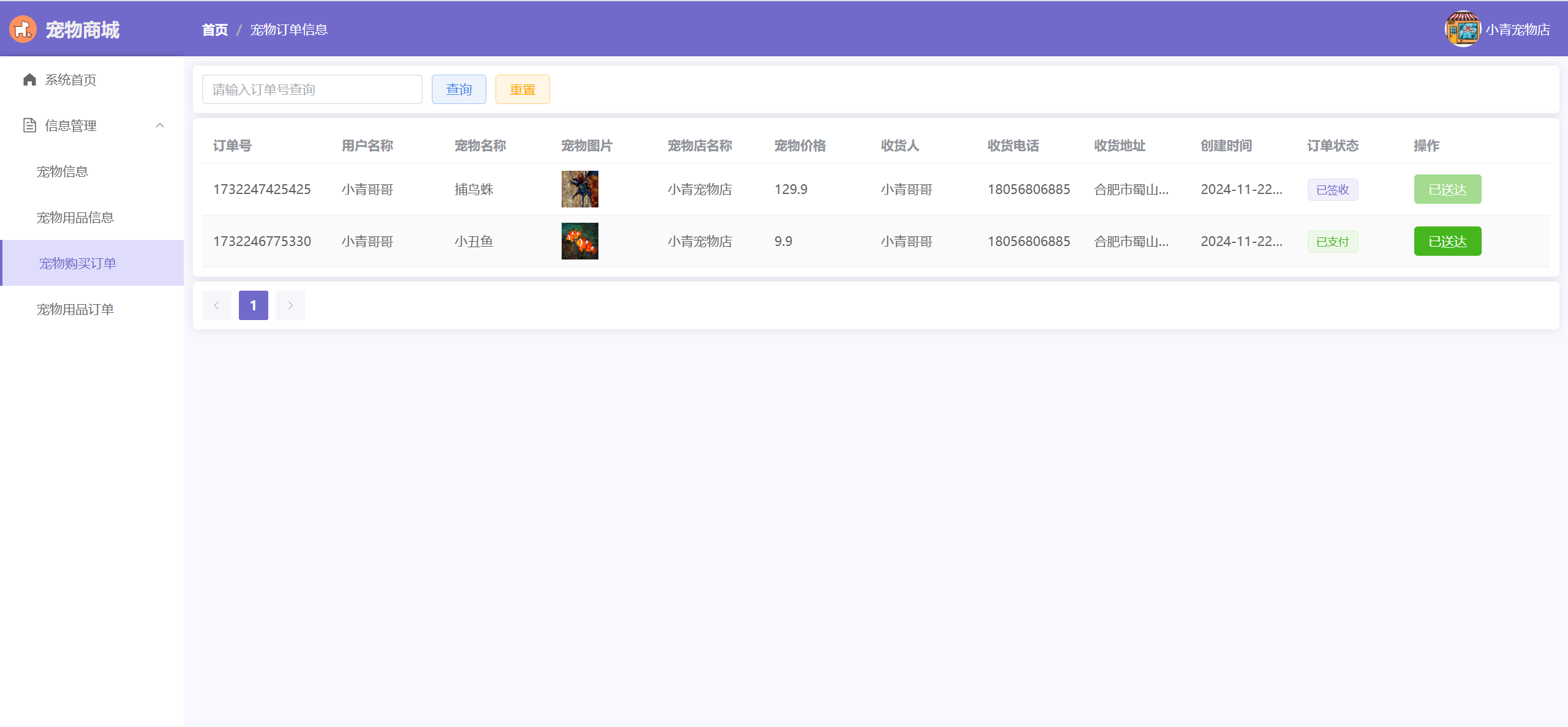 宠物购买订单:管理自己宠物店的宠物购买订单信息