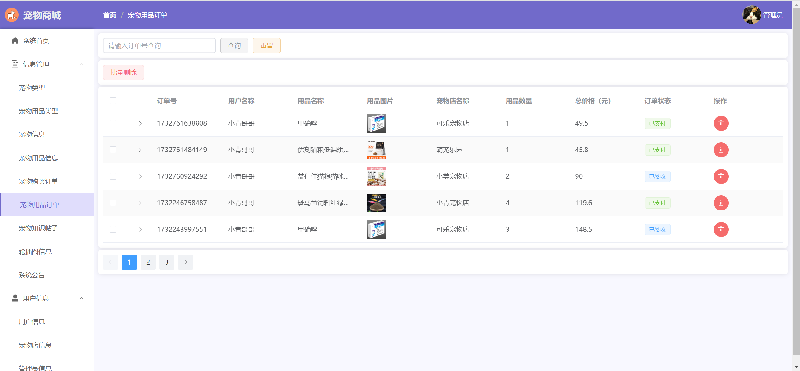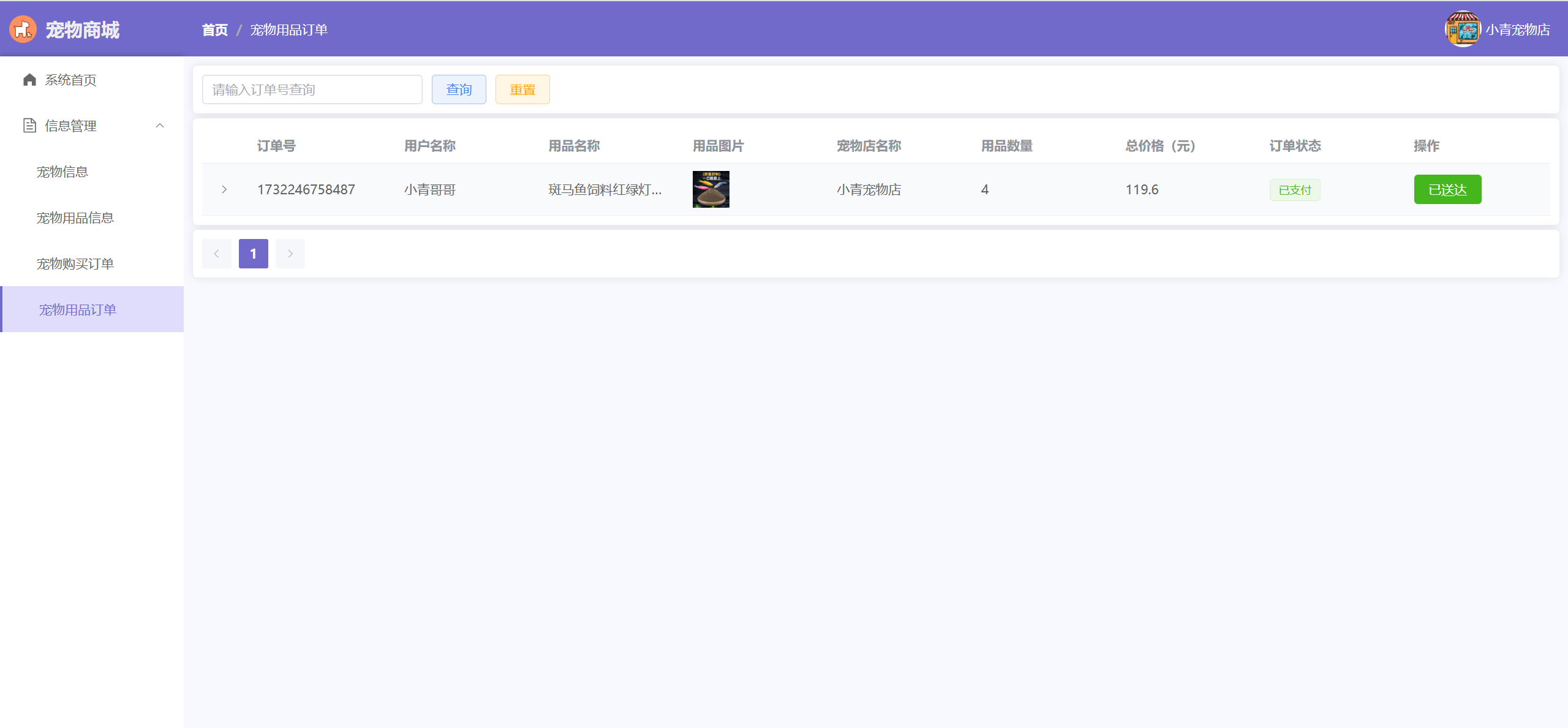 宠物用品订单:管理自己宠物店的宠物用品订单信息