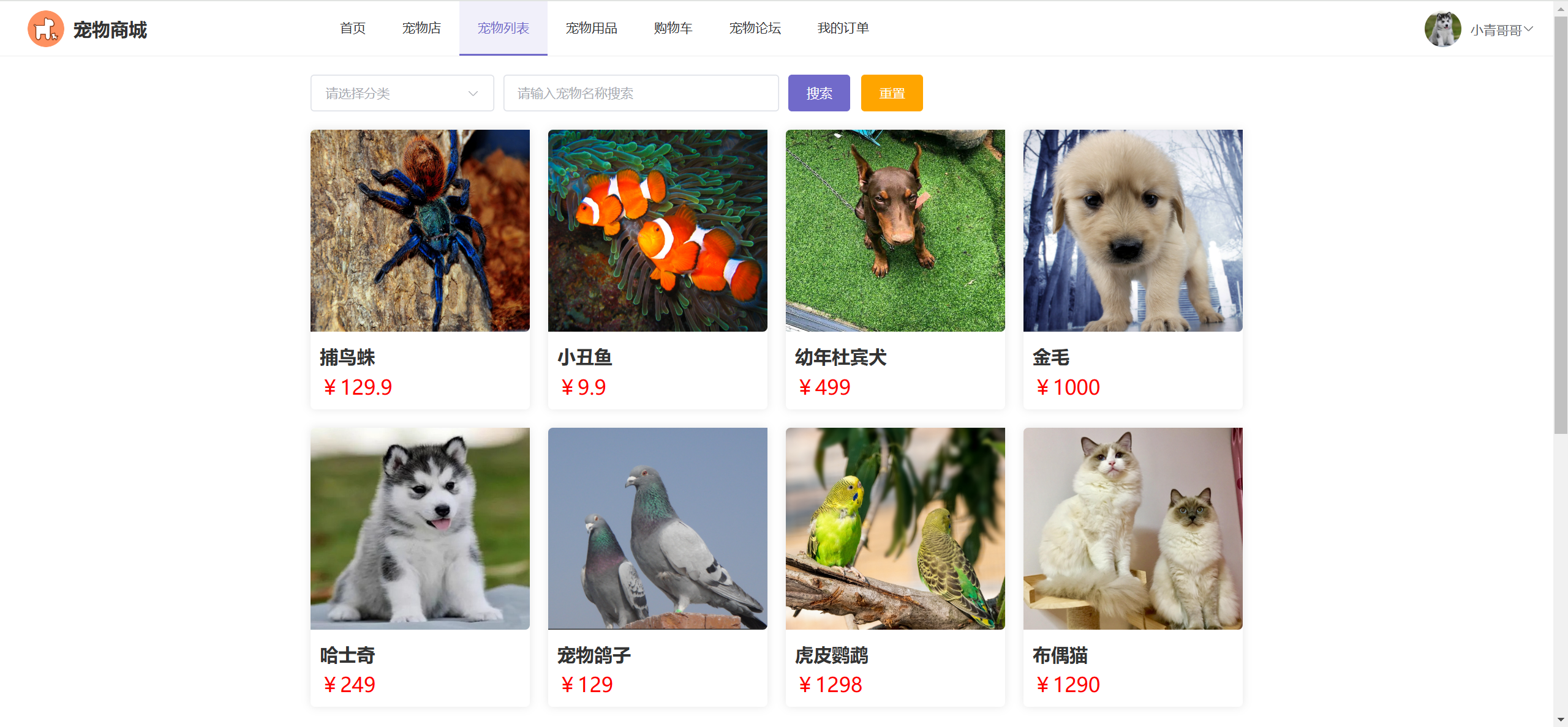 宠物店:查看所有宠物店信息和其售卖的宠物