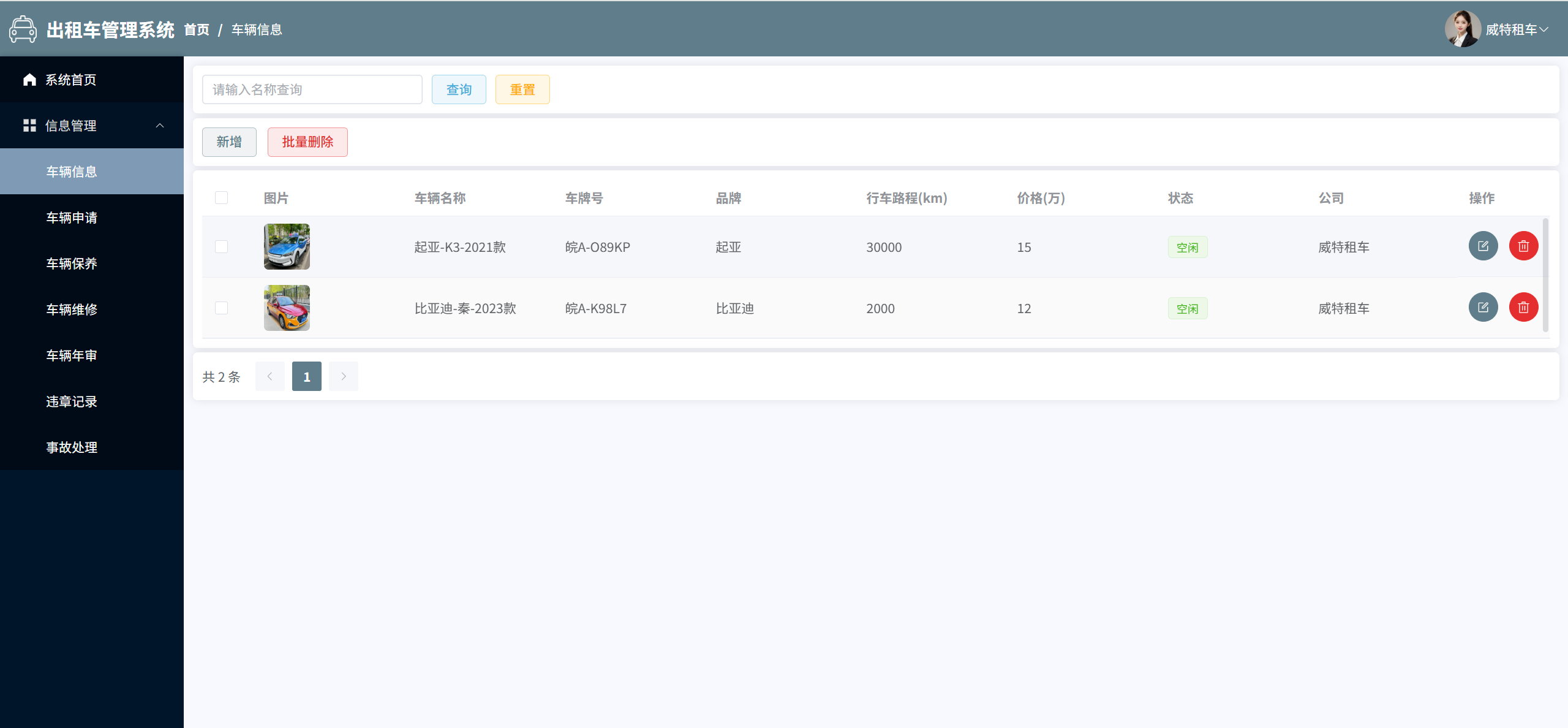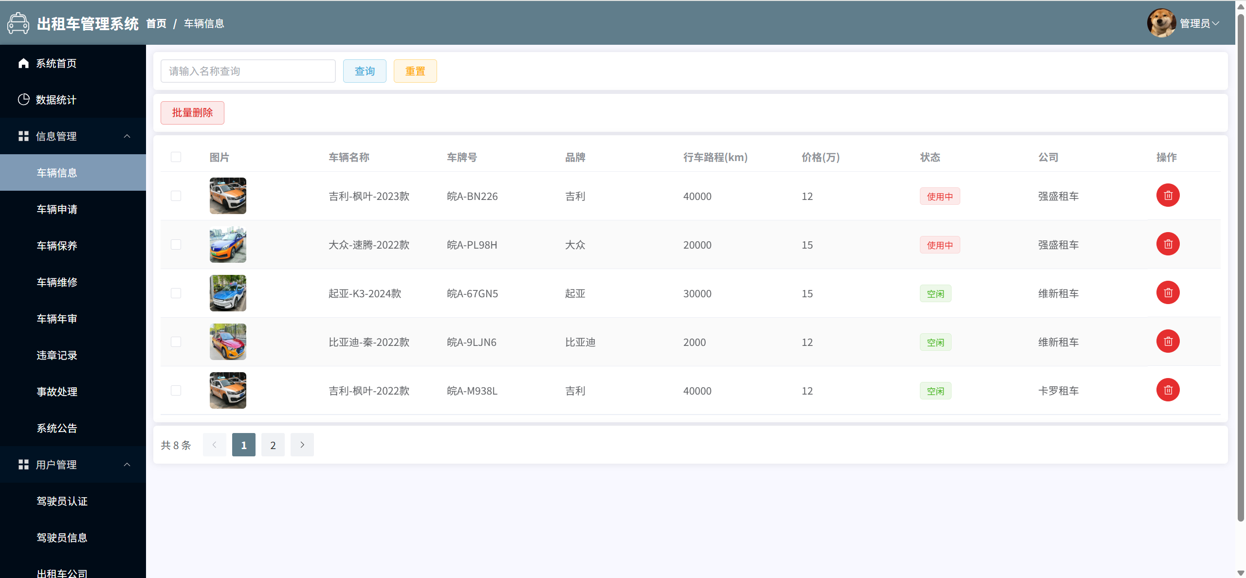 车辆信息:管理所有车辆信息