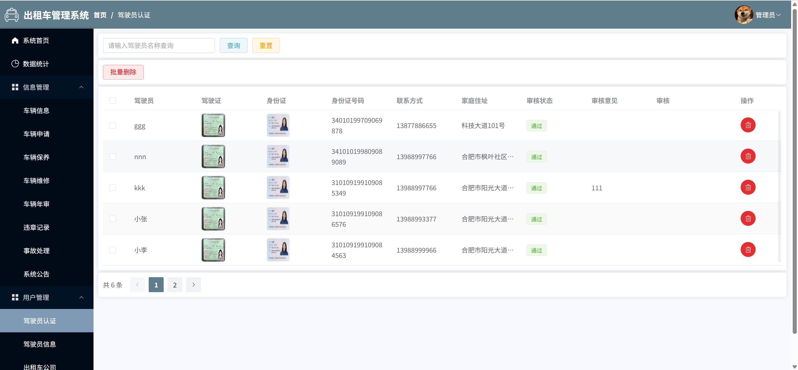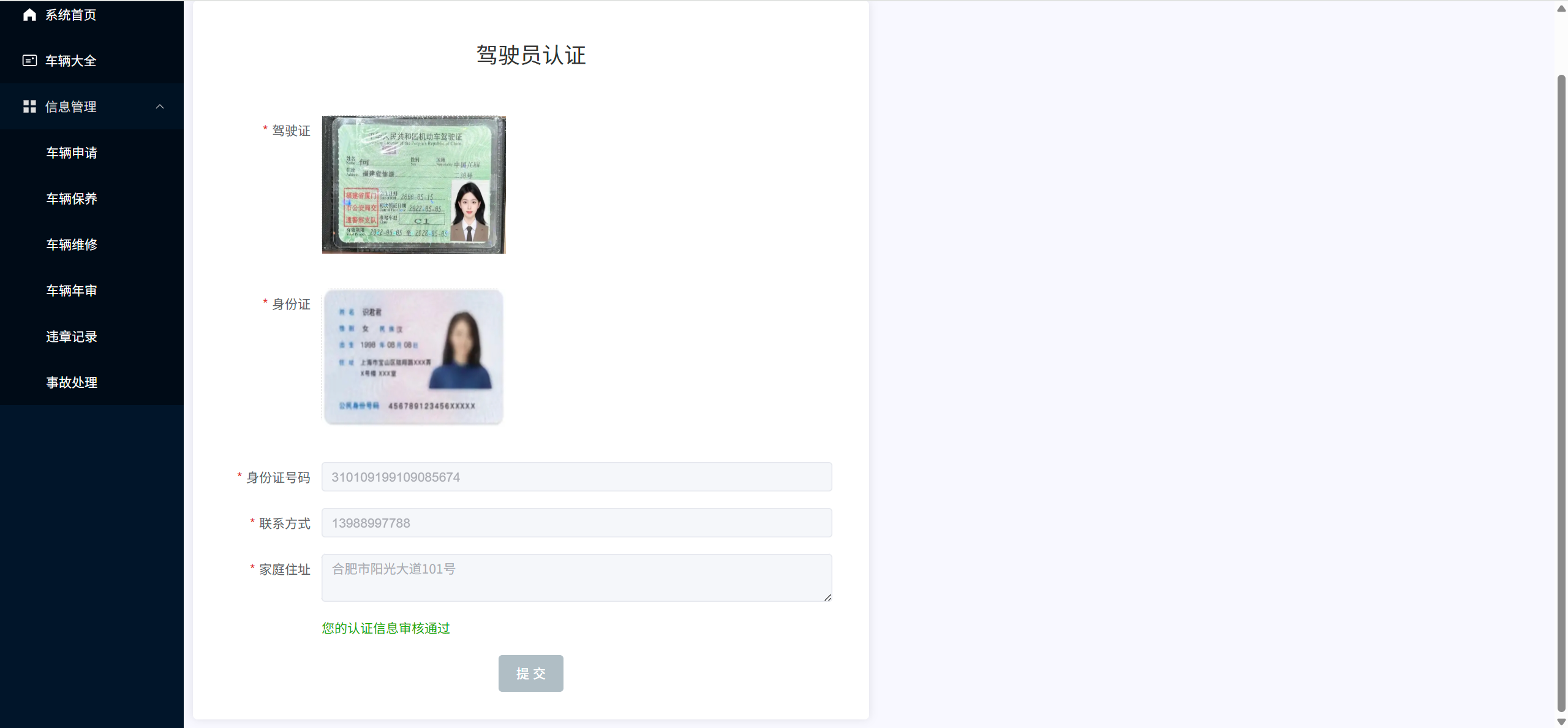 驾驶员认证:审核驾驶员提交的认证信息