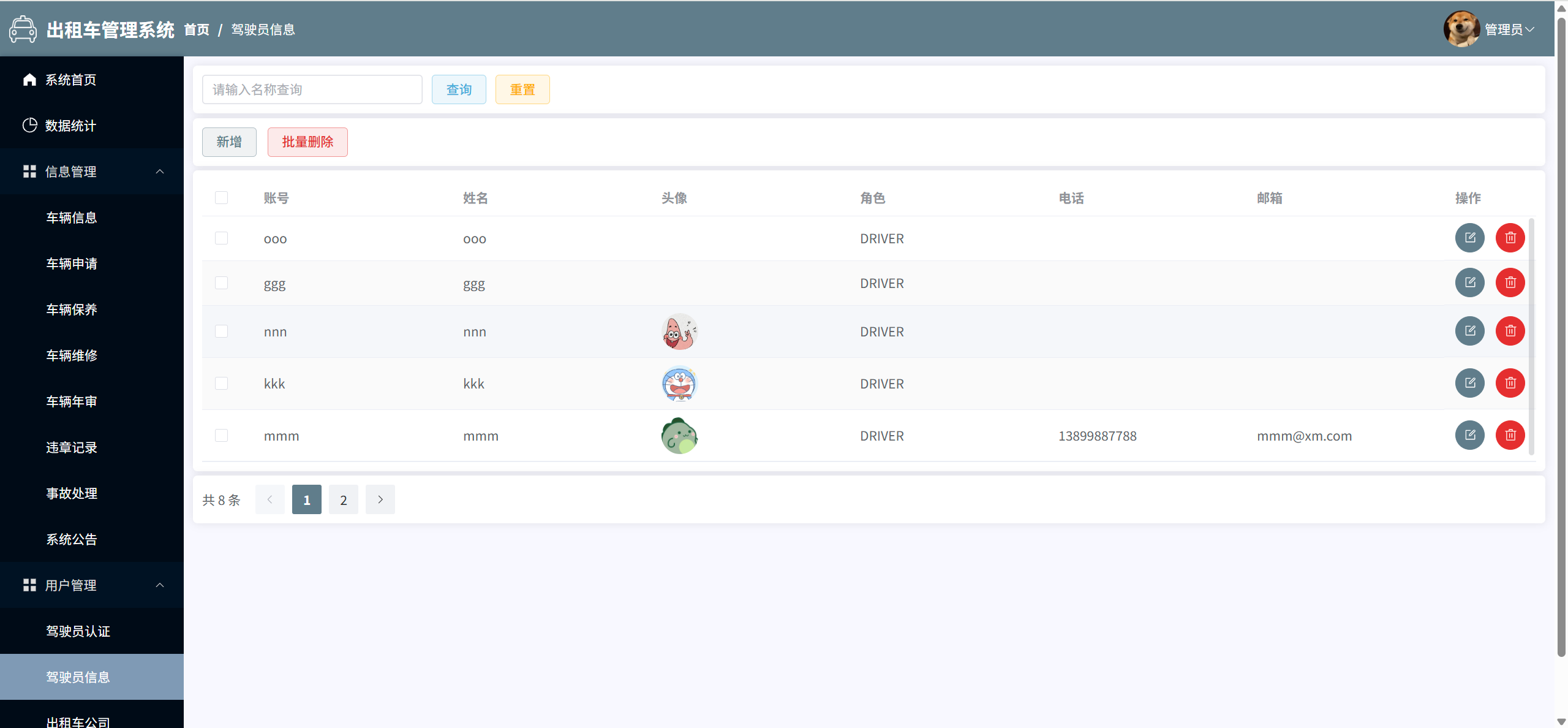 驾驶员管理:管理驾驶员信息