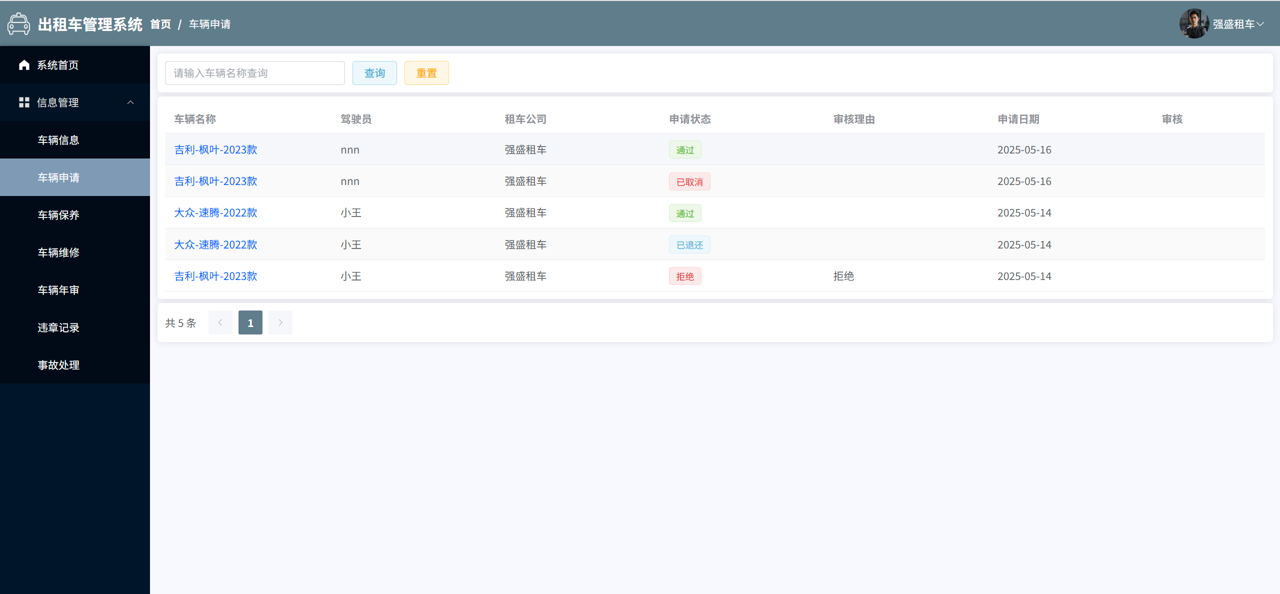 车辆申请:管理所有车辆申请信息