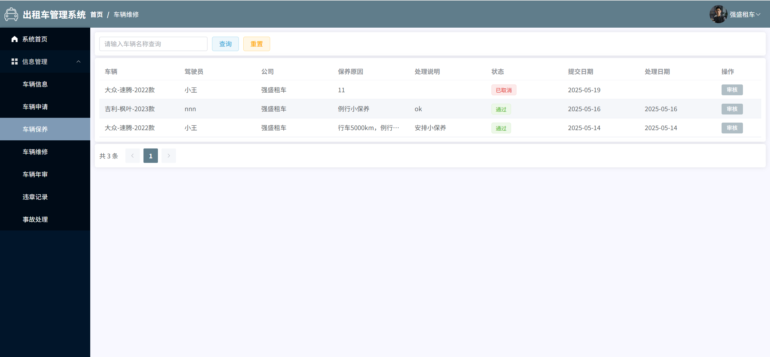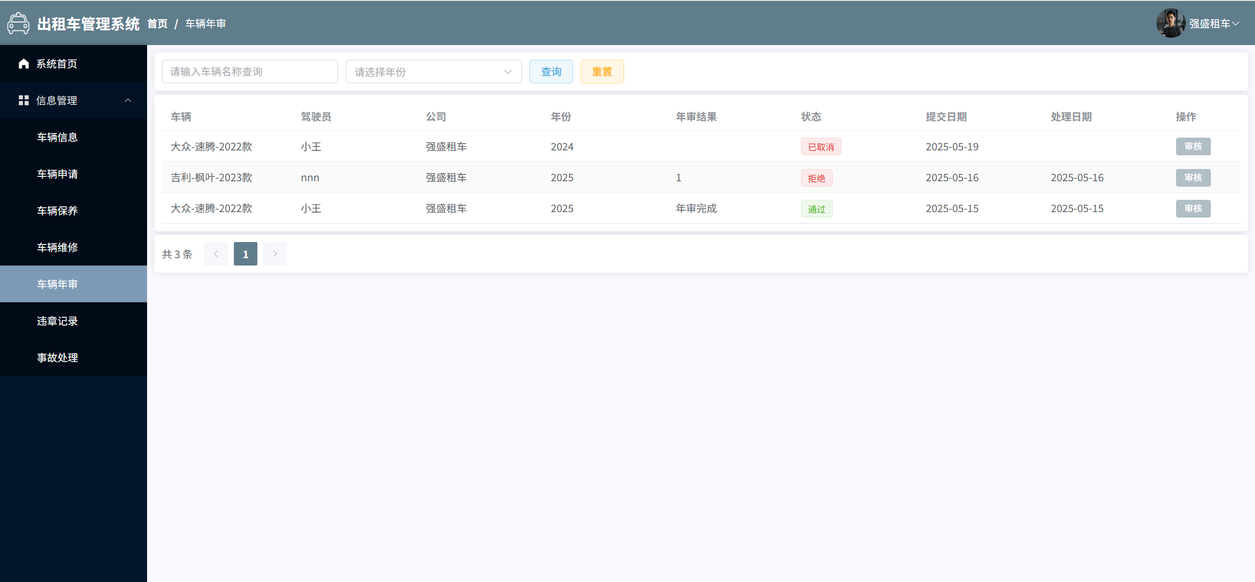 车辆年审:管理所有车辆年审申请信息