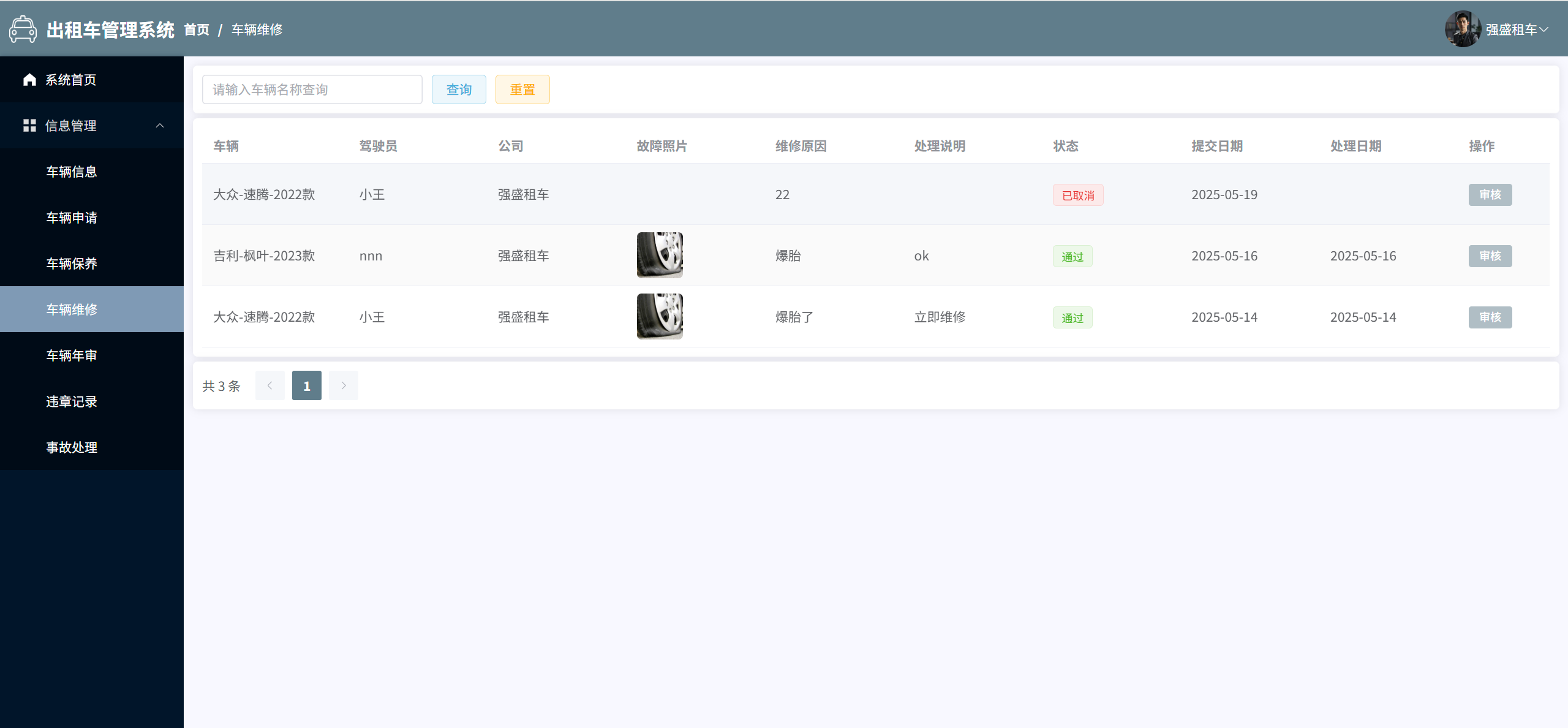 车辆维修:管理所有车辆维修申请信息