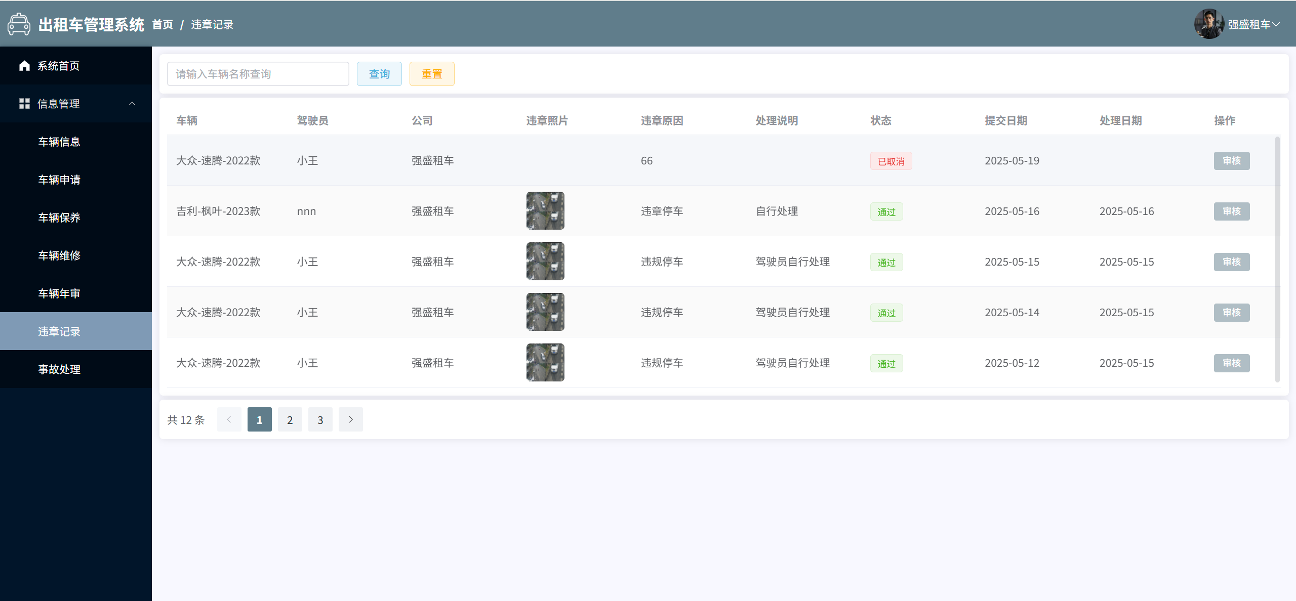 违章记录:审批驾驶员车辆违章信息