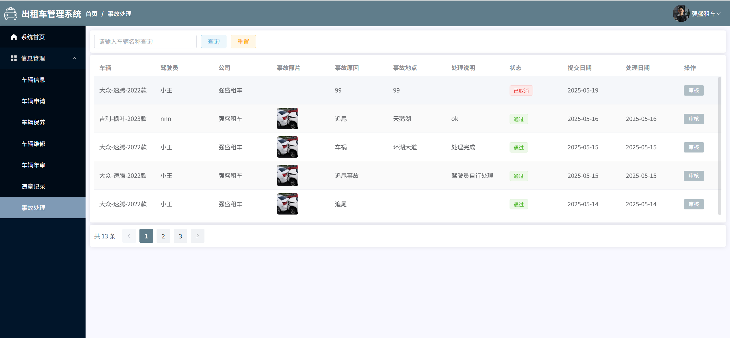 事故处理:管理所有车辆事故申请信息