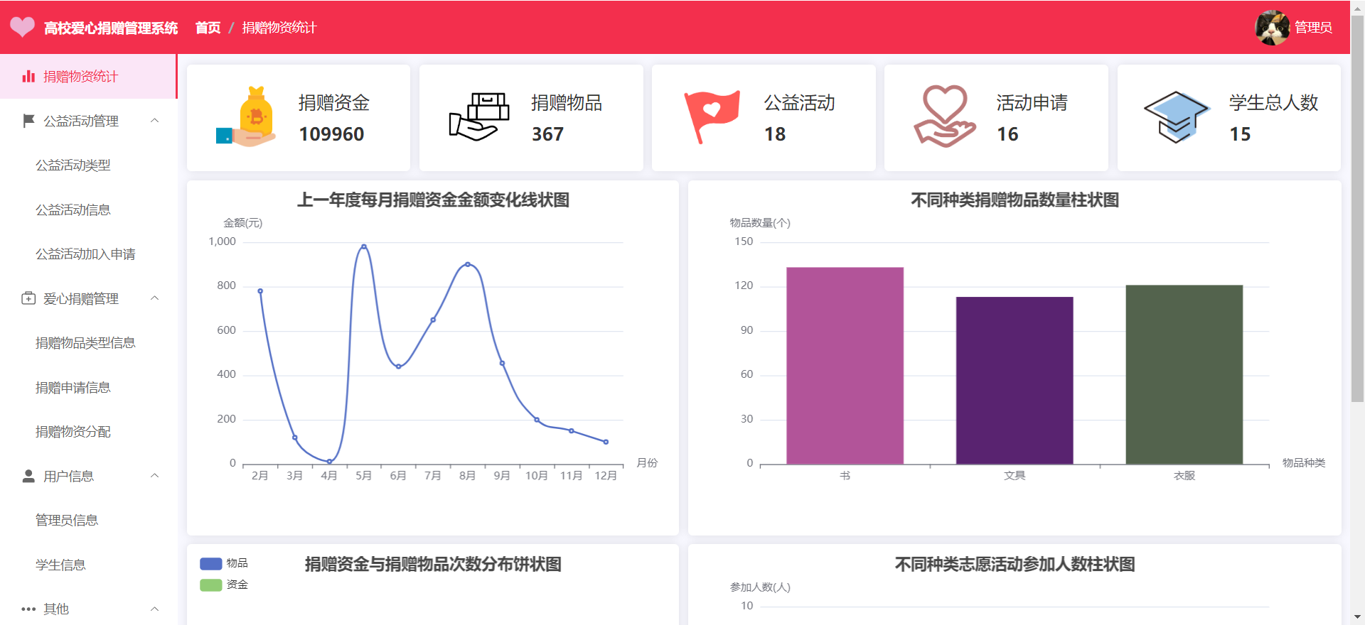 捐赠物资统计:查看所有物资捐赠情况统计图