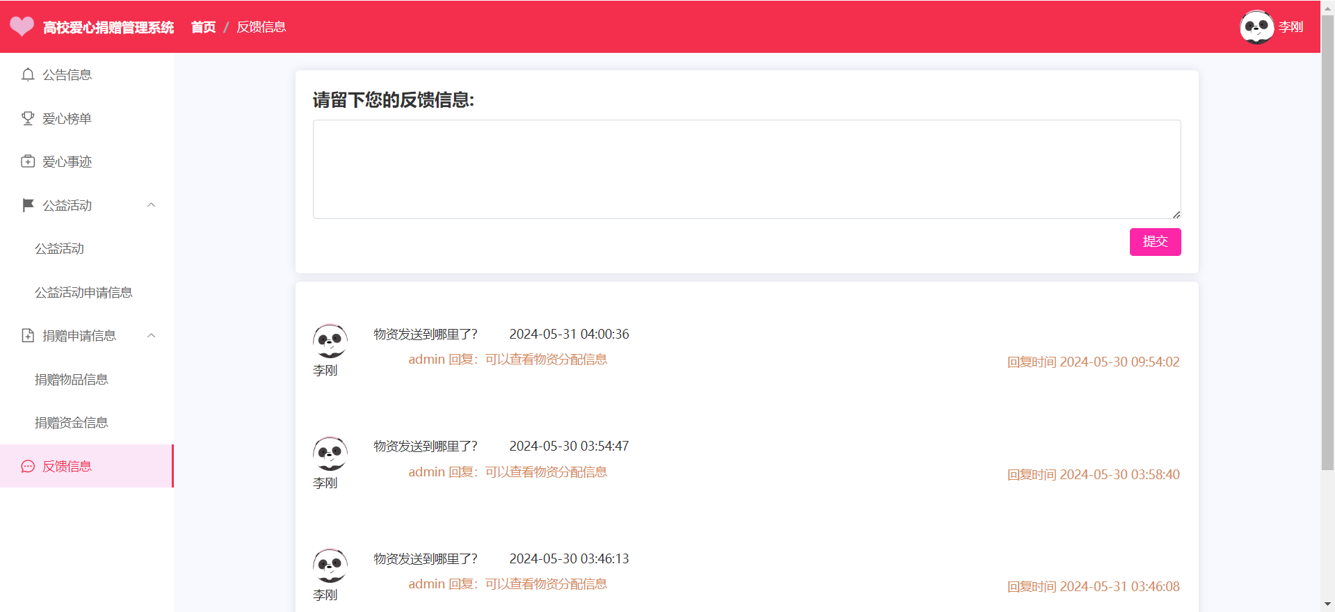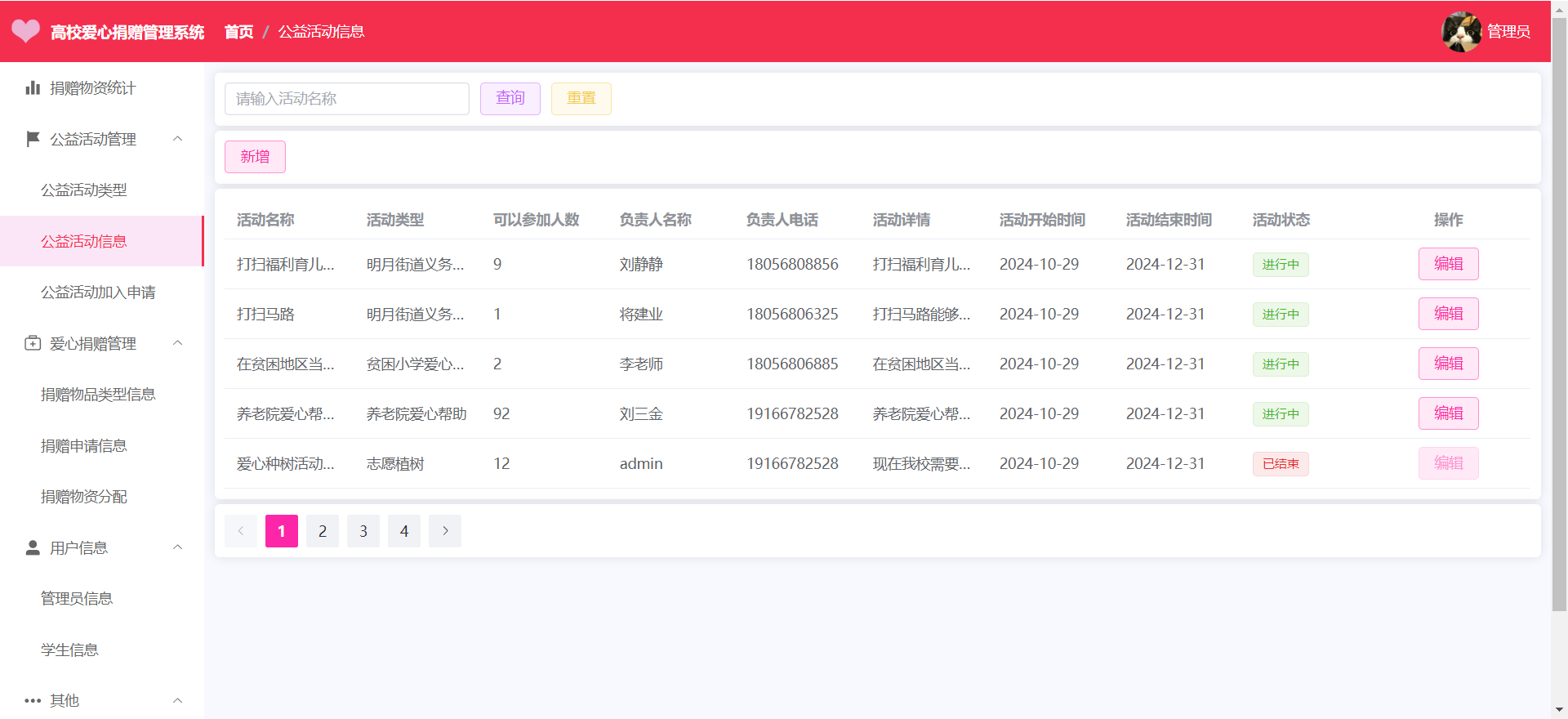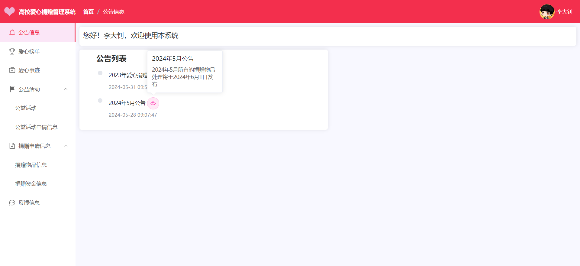 爱心榜单:查看根据捐赠物品、物资或者参加活动次数由系统评选出来的爱心榜单