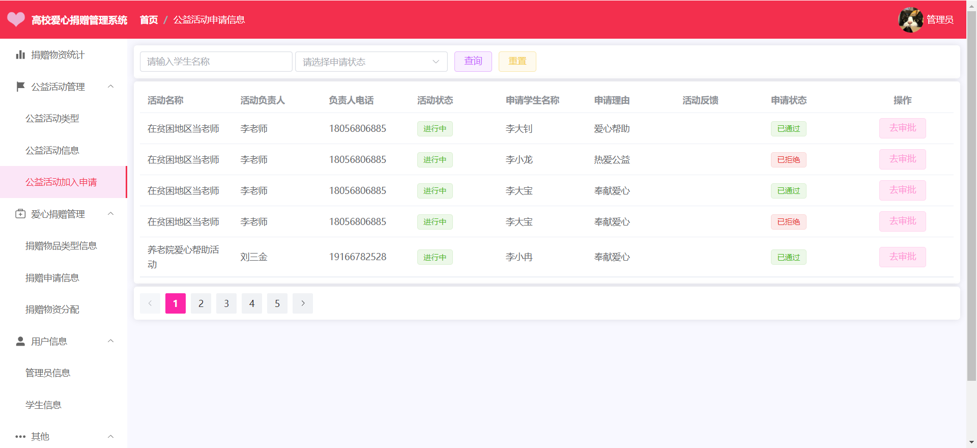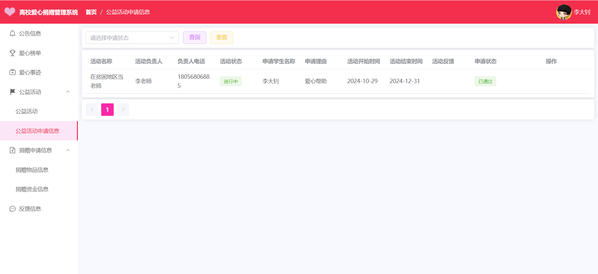 公益活动申请信息:查看和修改申请加入公益活动的申请