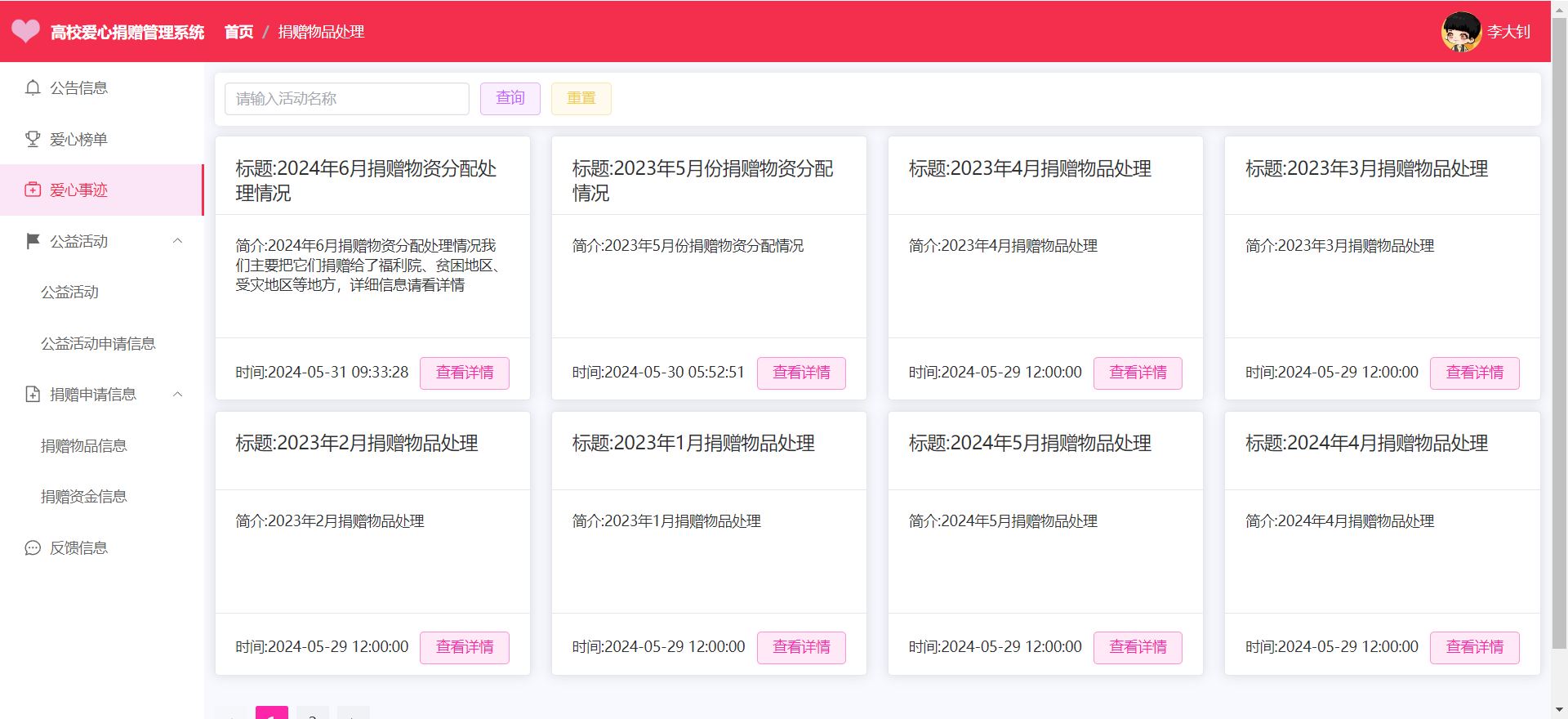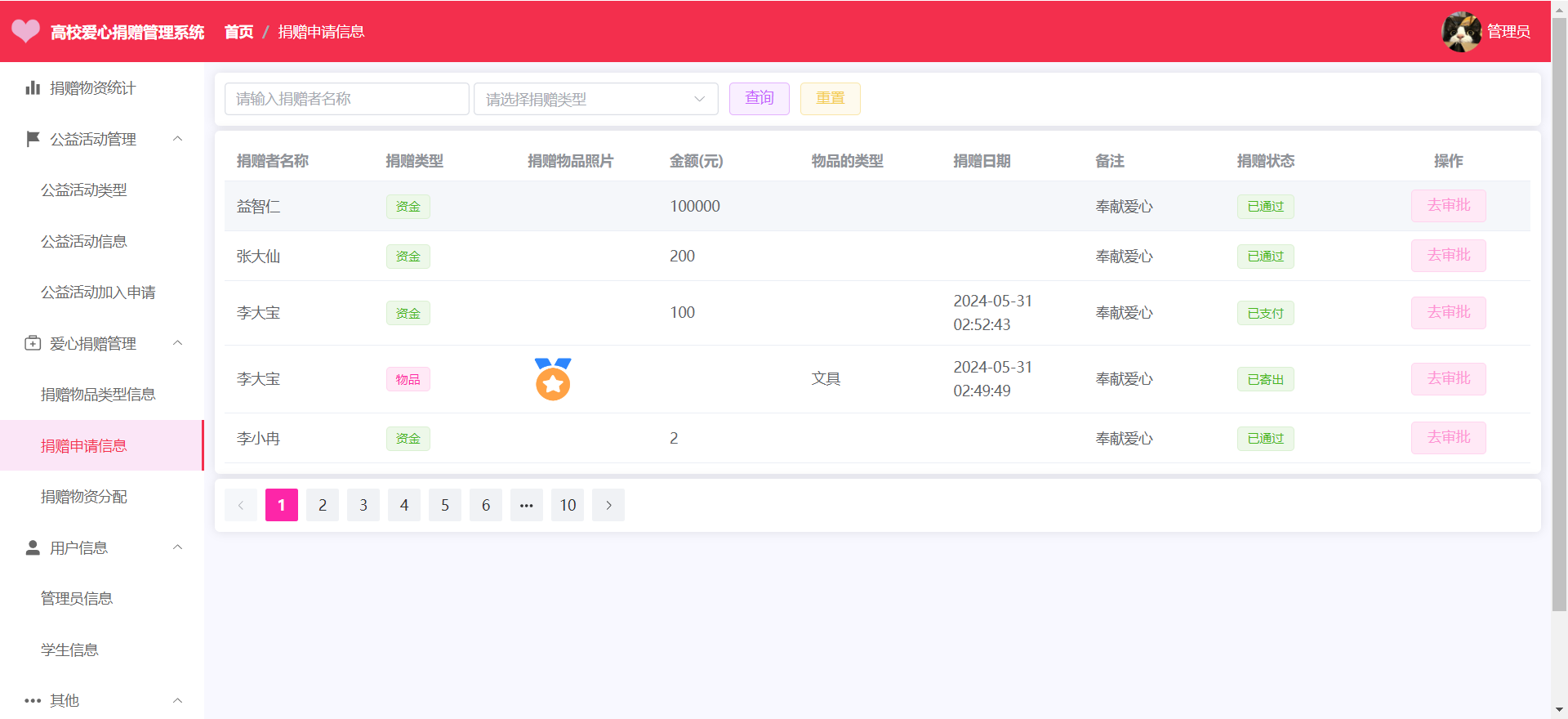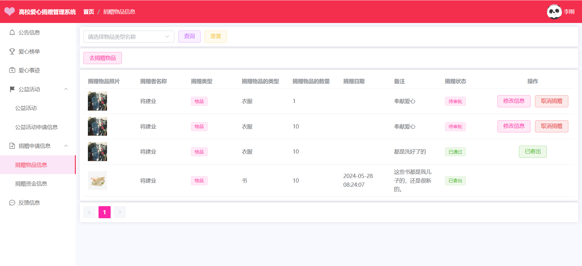 捐赠物品信息:查看和修改申请的物品捐赠申请信息