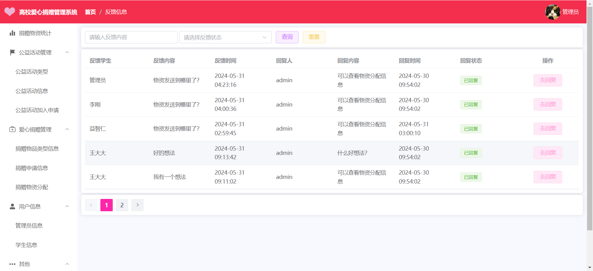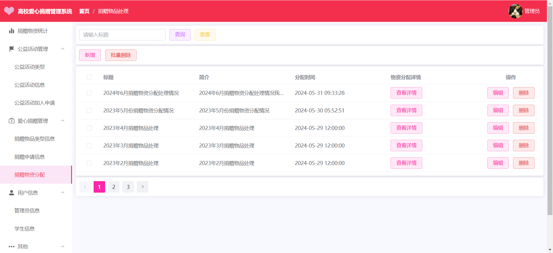 捐赠物资分配:管理捐赠物资最终的分配处理信息