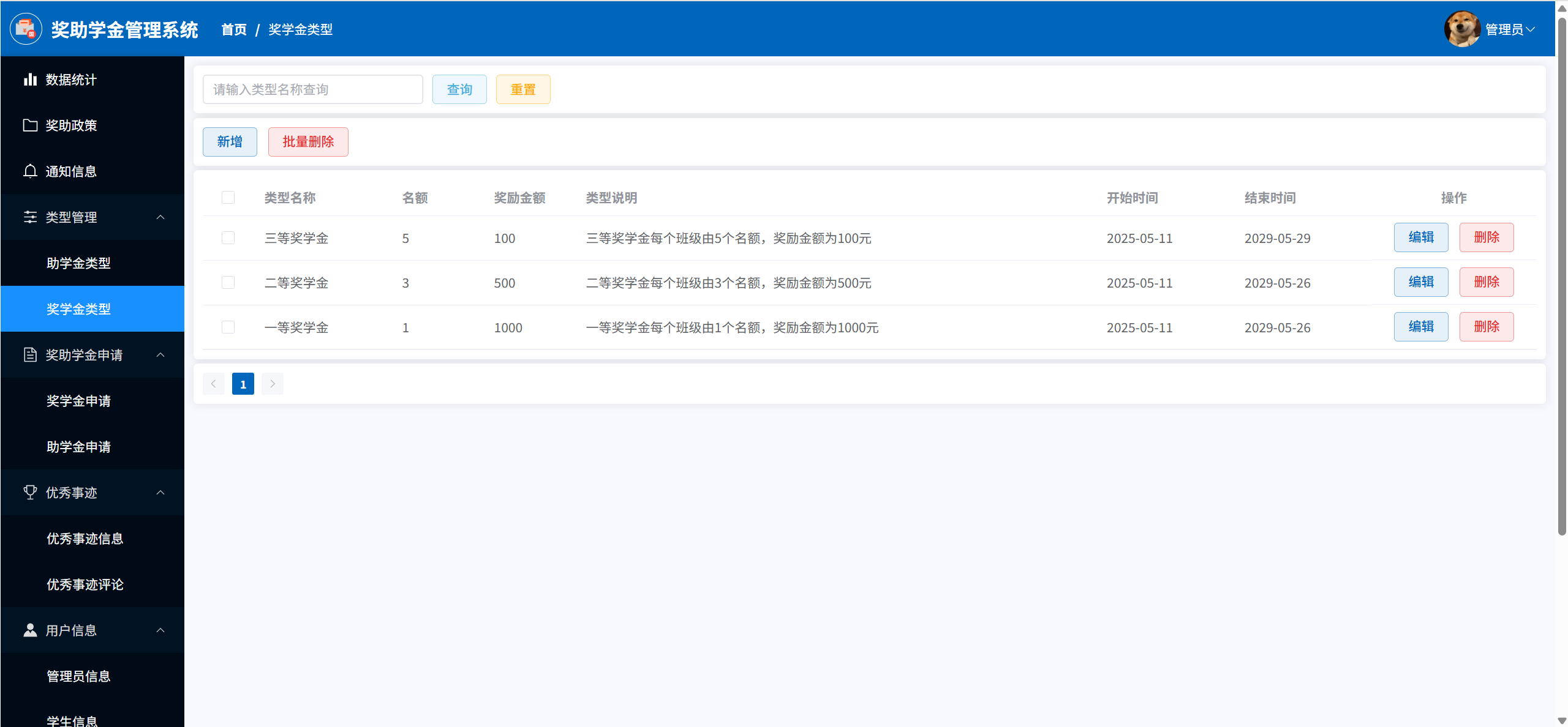 奖学金列表:可以查看当前可以申请的奖学金类型并且可以进行申请