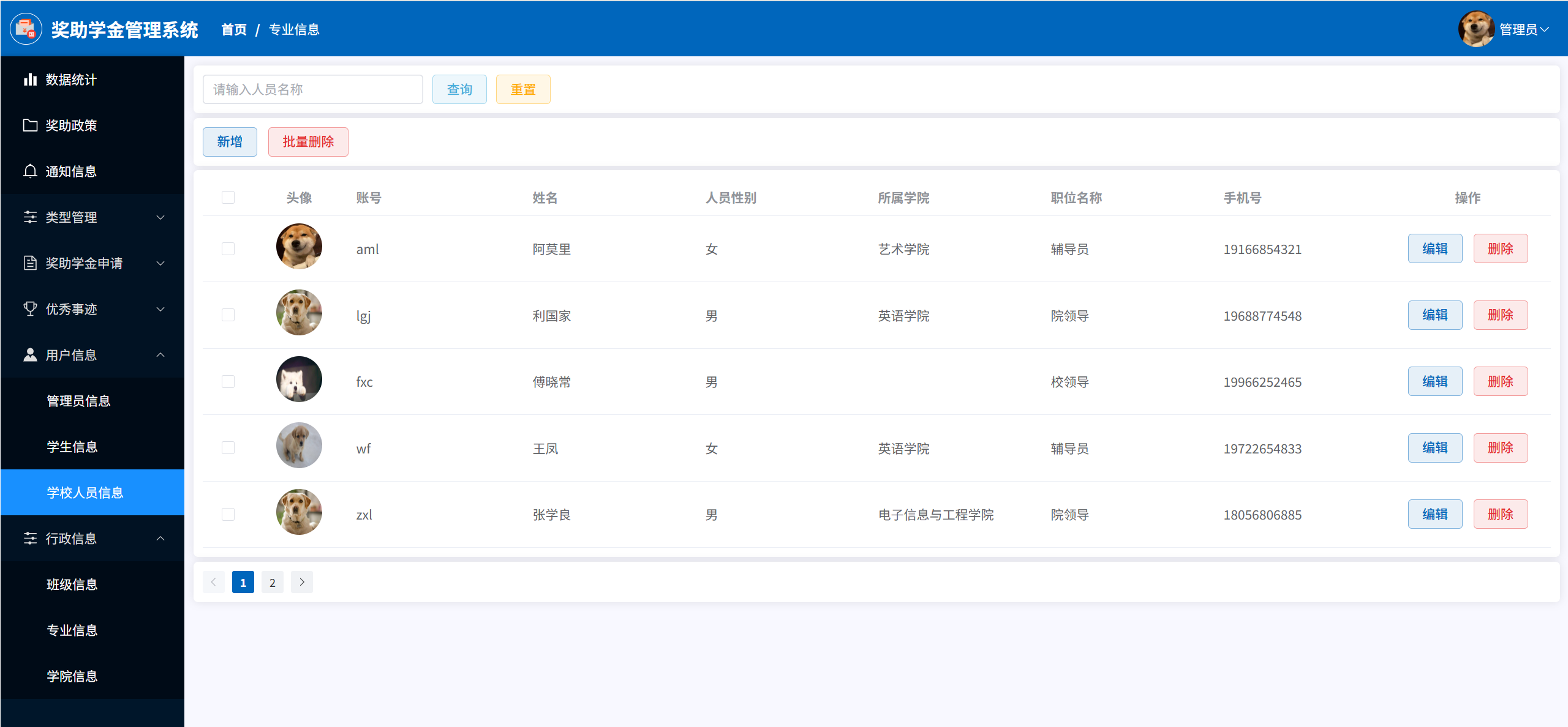 学院学生信息:查看该院领导所属学院下的所有学生信息