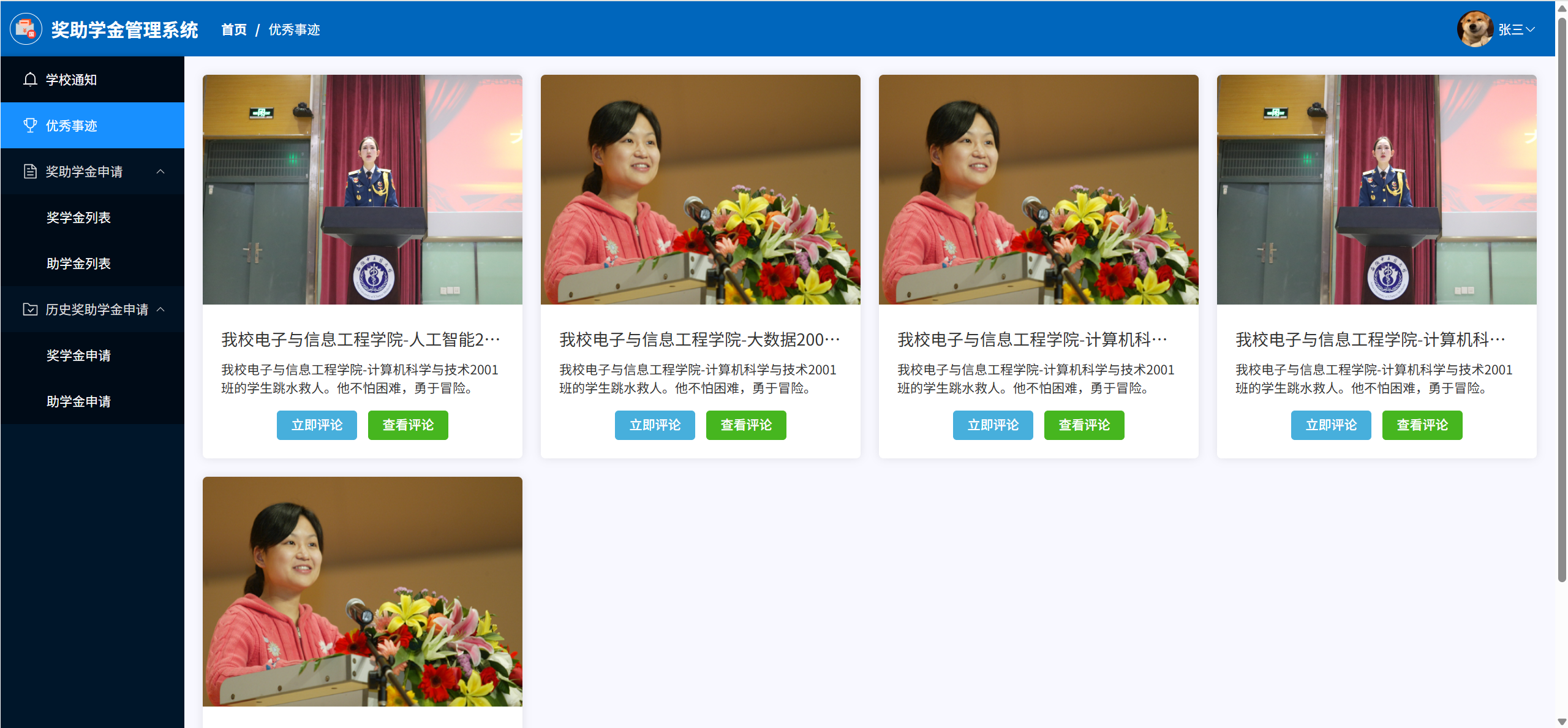 优秀事迹:查看学校的优秀事迹并且可以进行评论和查看评论