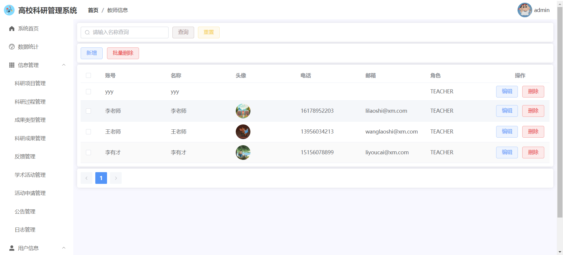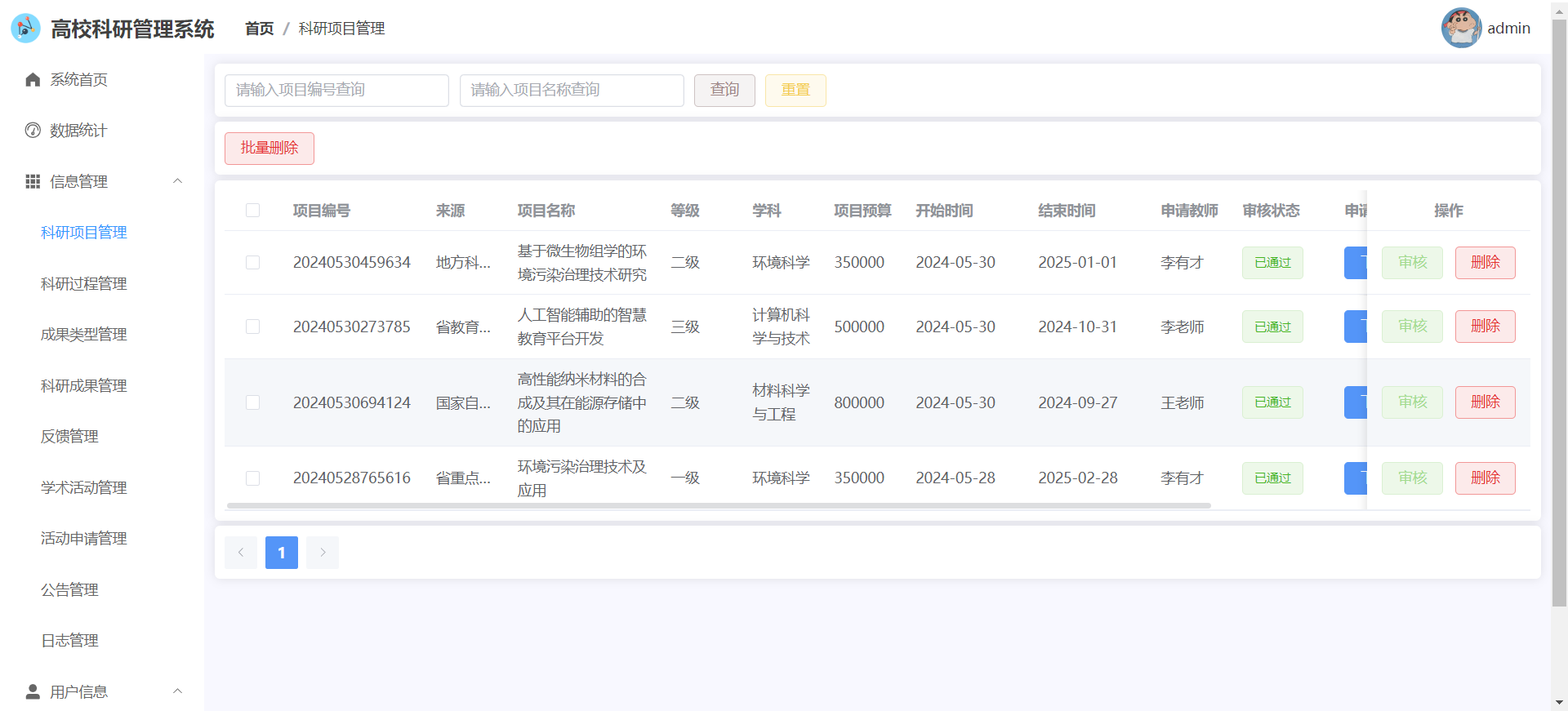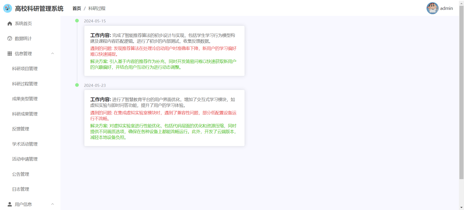 科研过程管理:对申请通过的科研项目进行新增科研过程