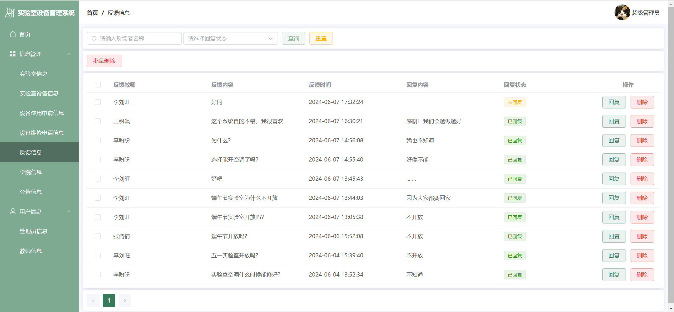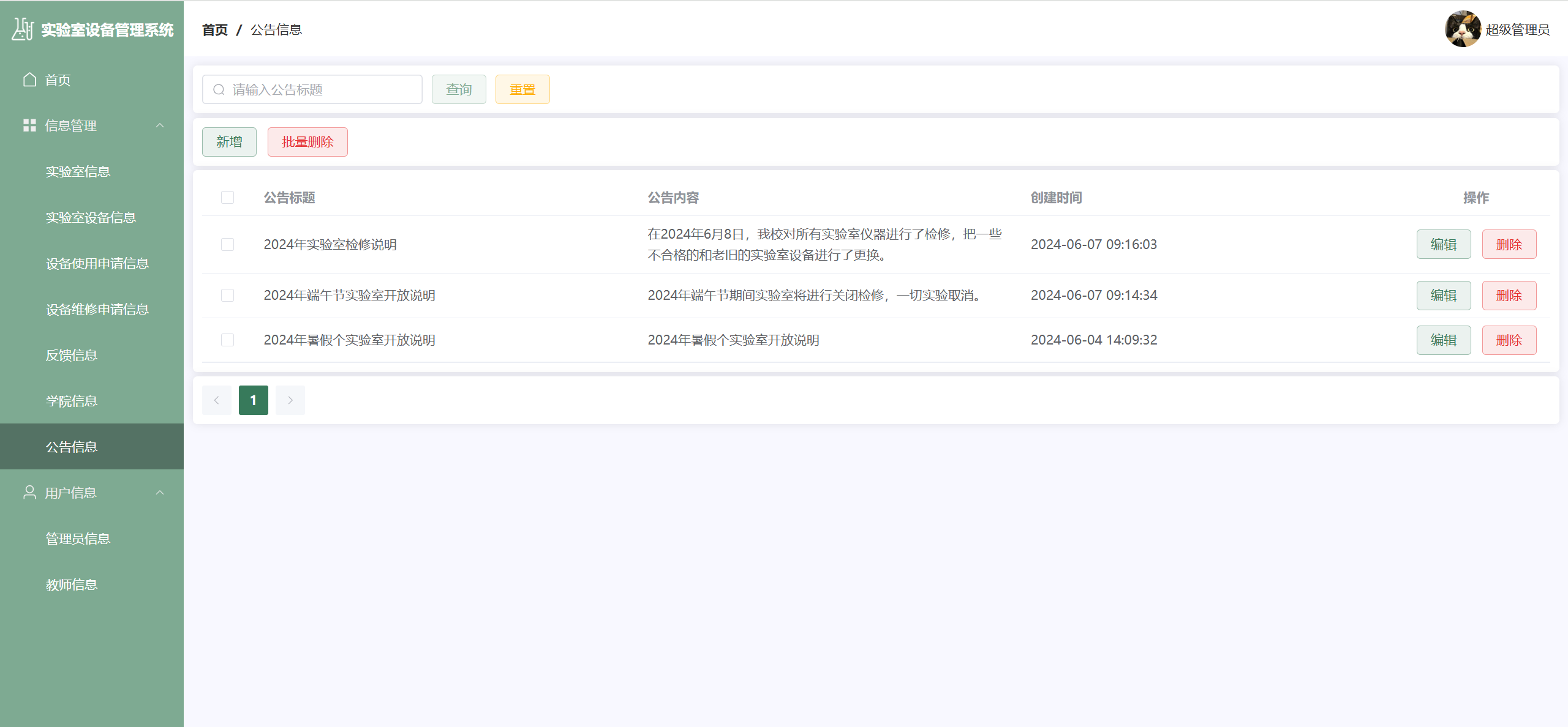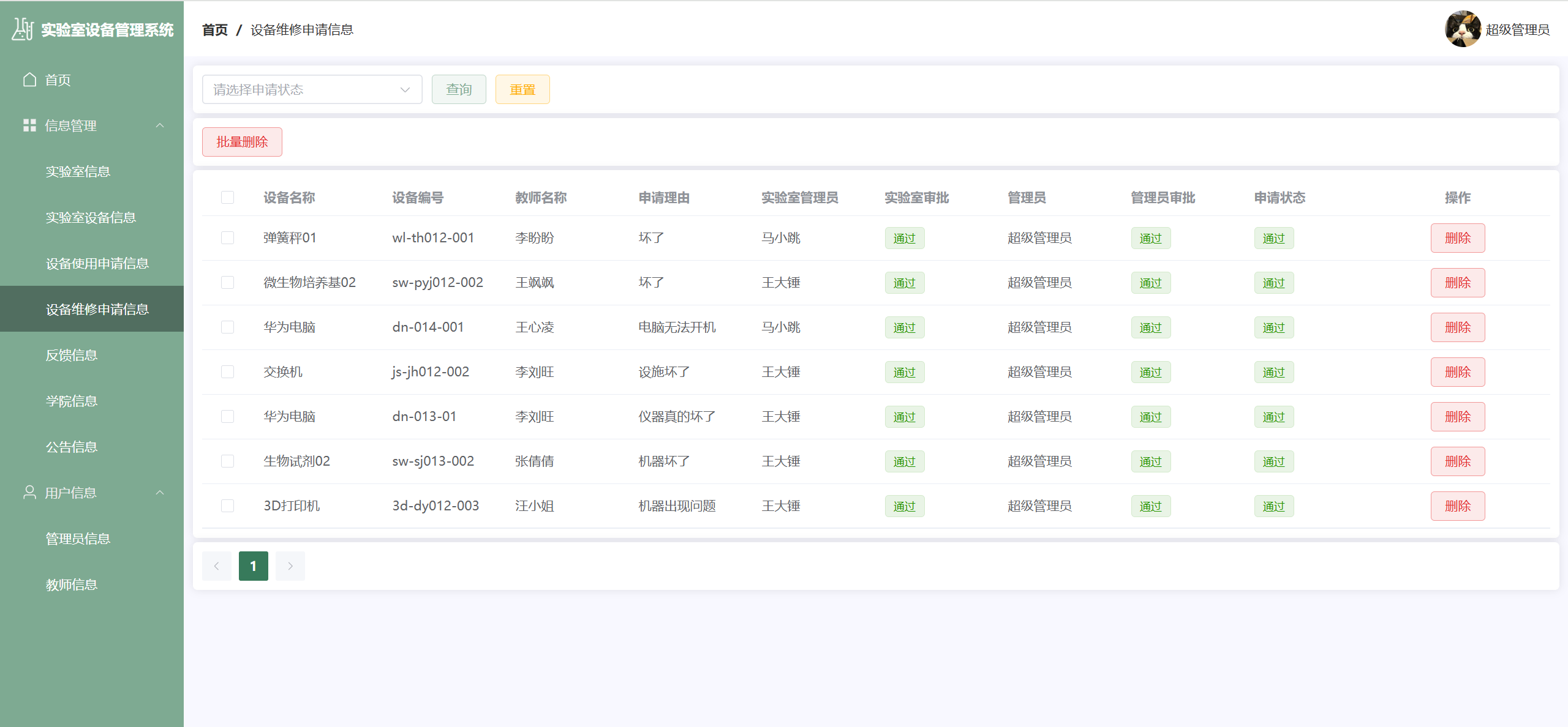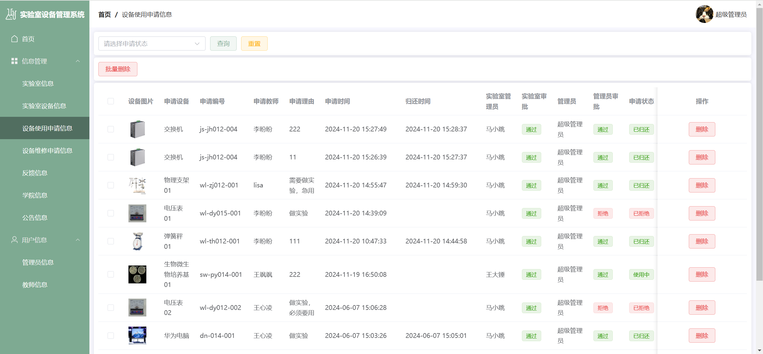 实验室设备信息:查看和申请使用本学院所有实验室的设备信息