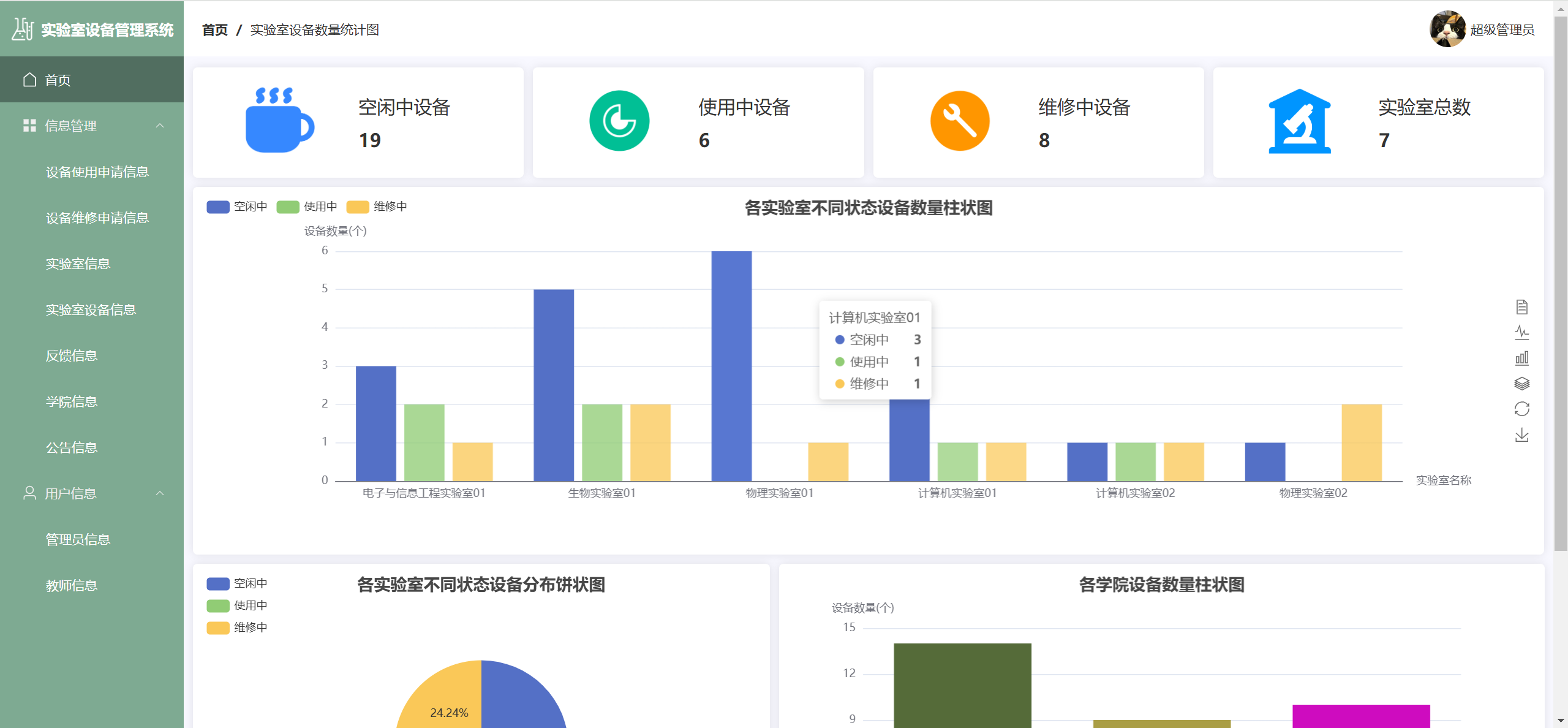 系统首页:查看由自己管理的实验室设备数量统计图表