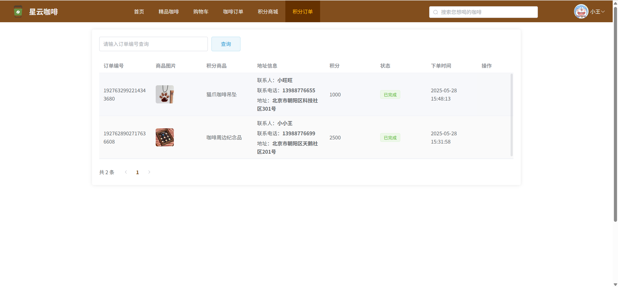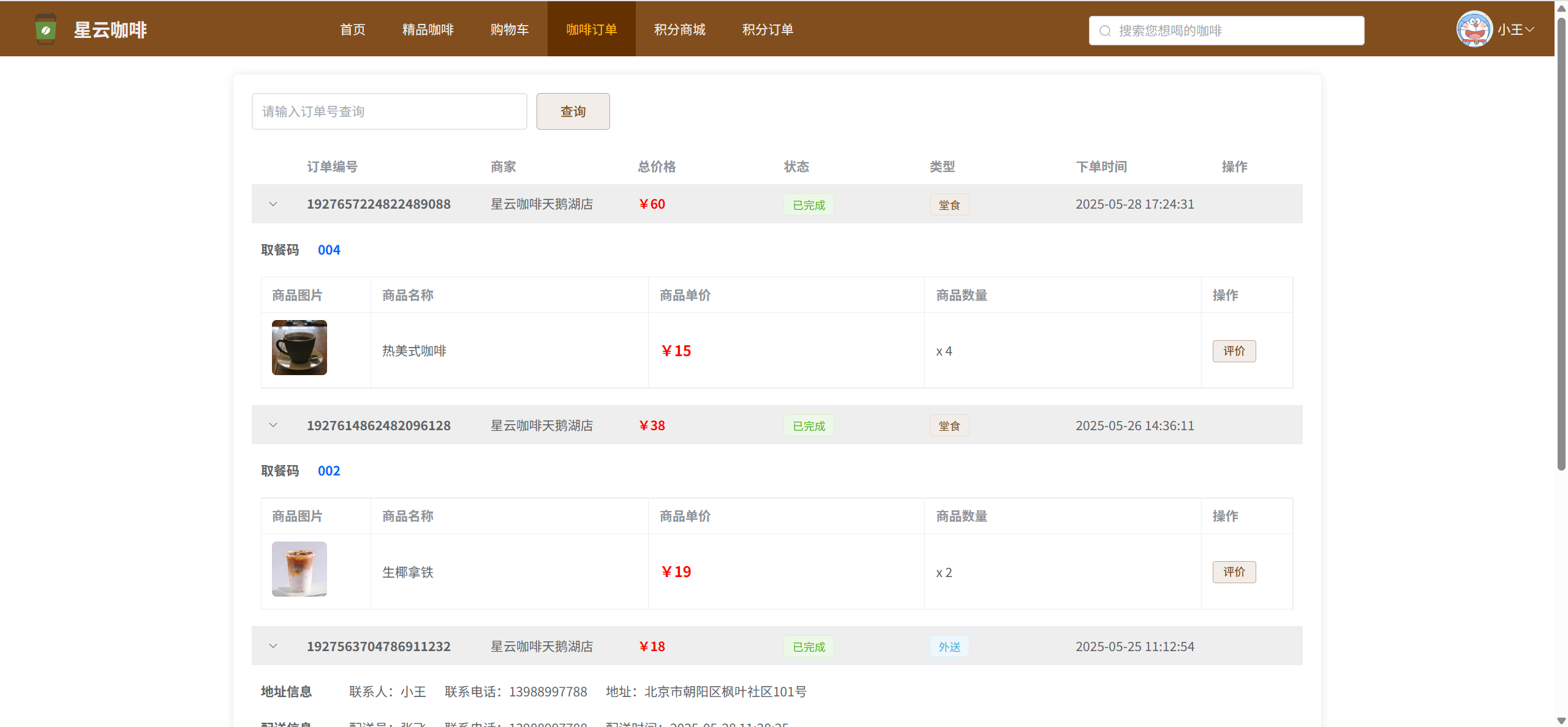我的点单:查看自己的咖啡订单信息,可取消订单、可确认收货、可评价订单