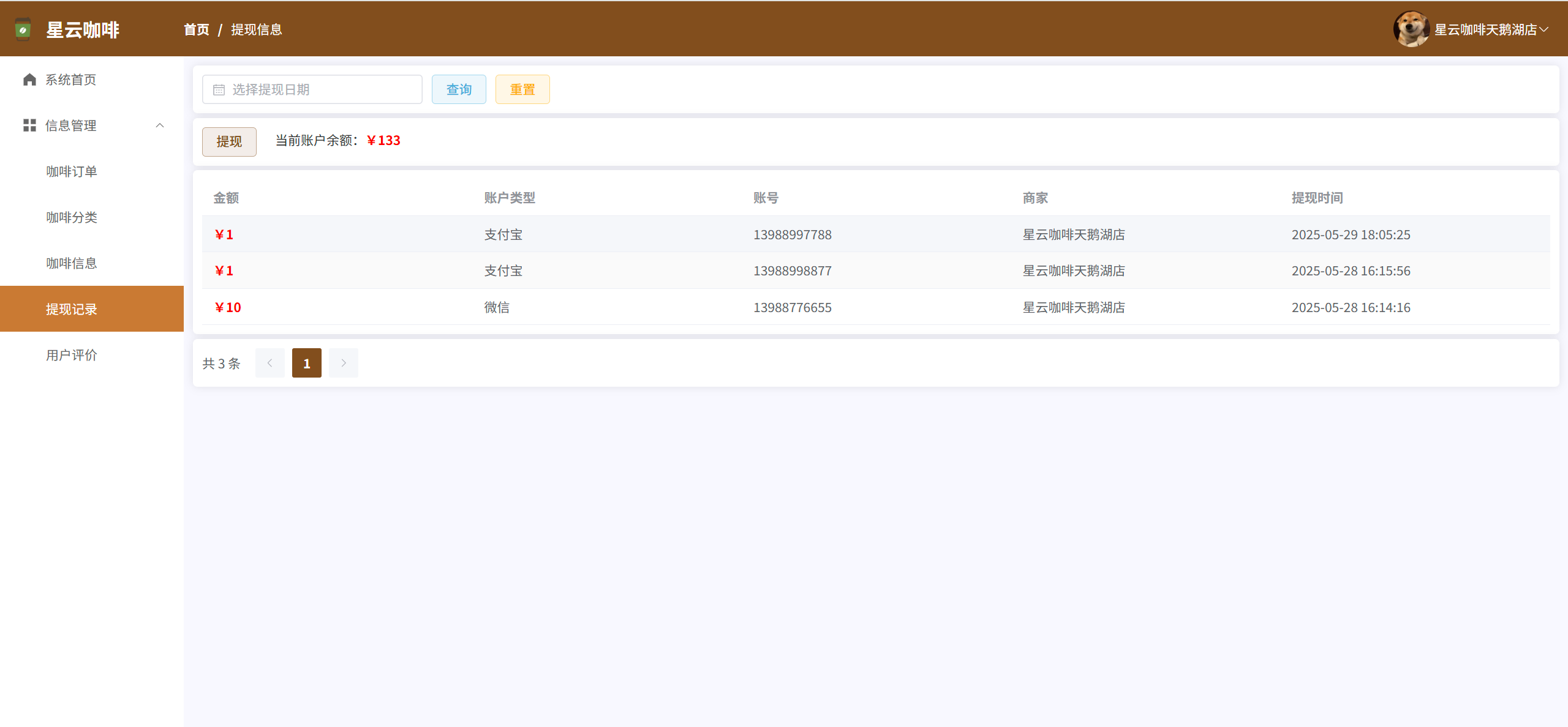 商家提现:管理所有商家的提现信息