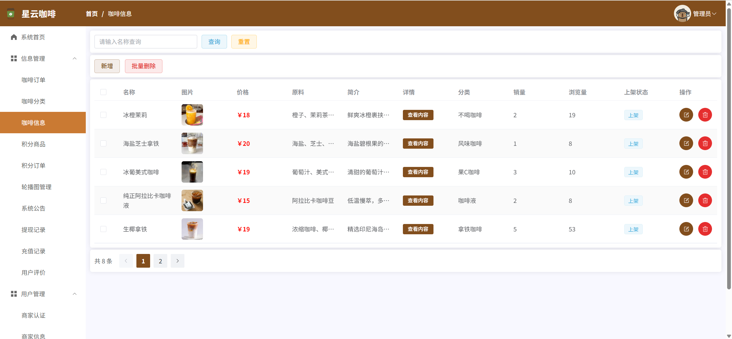 咖啡信息:管理咖啡信息