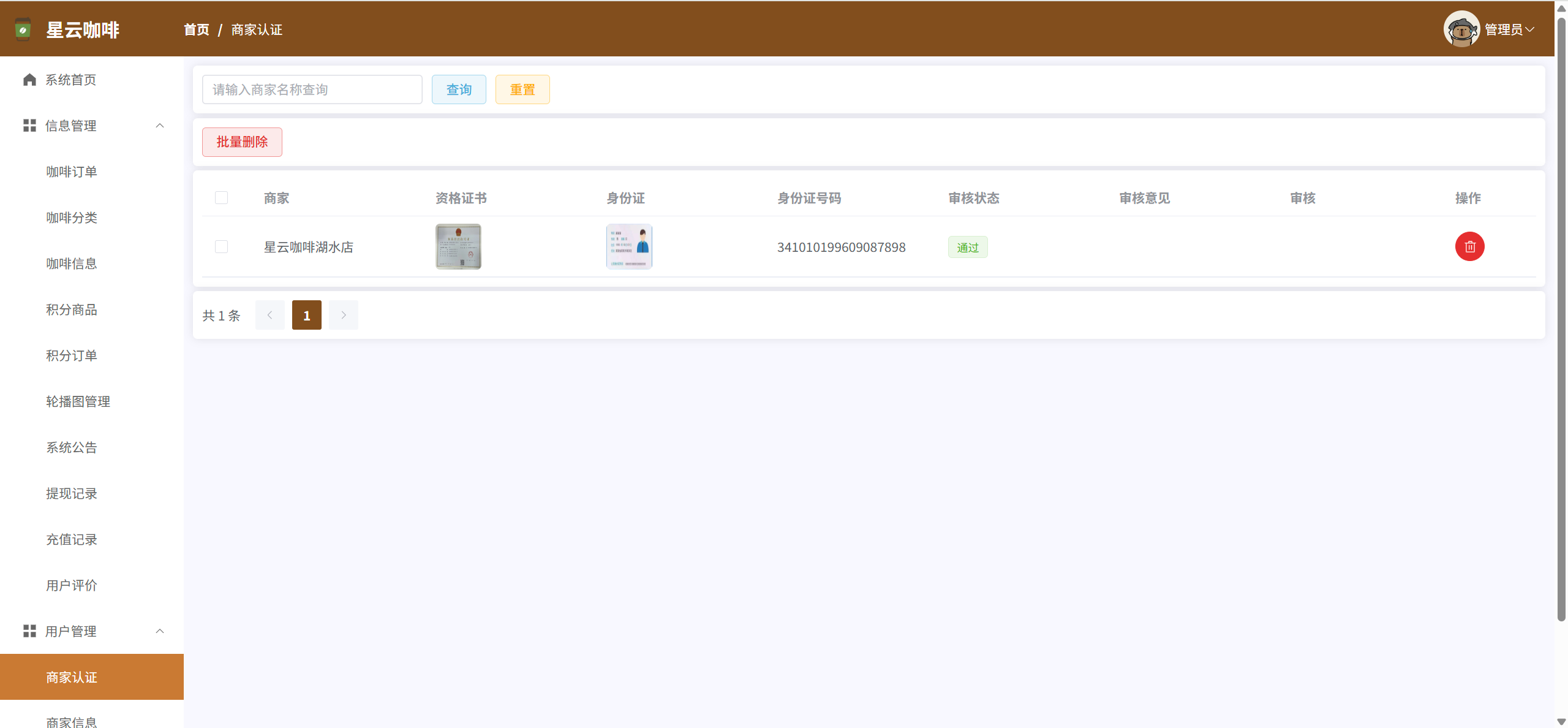 商家认证:管理并审核新注册商家的认证信息