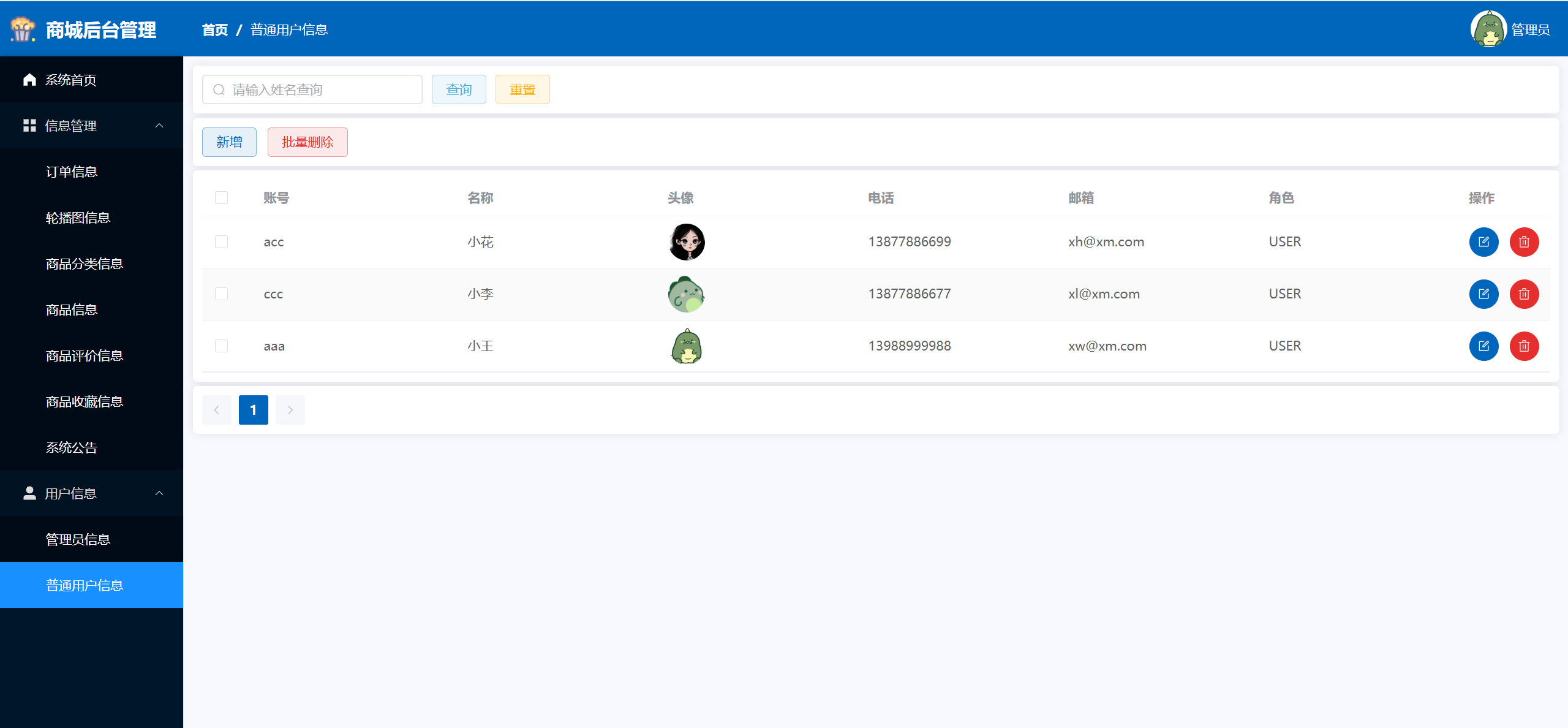 我的收货地址:可以对个人的收货地址信息进行增删改查