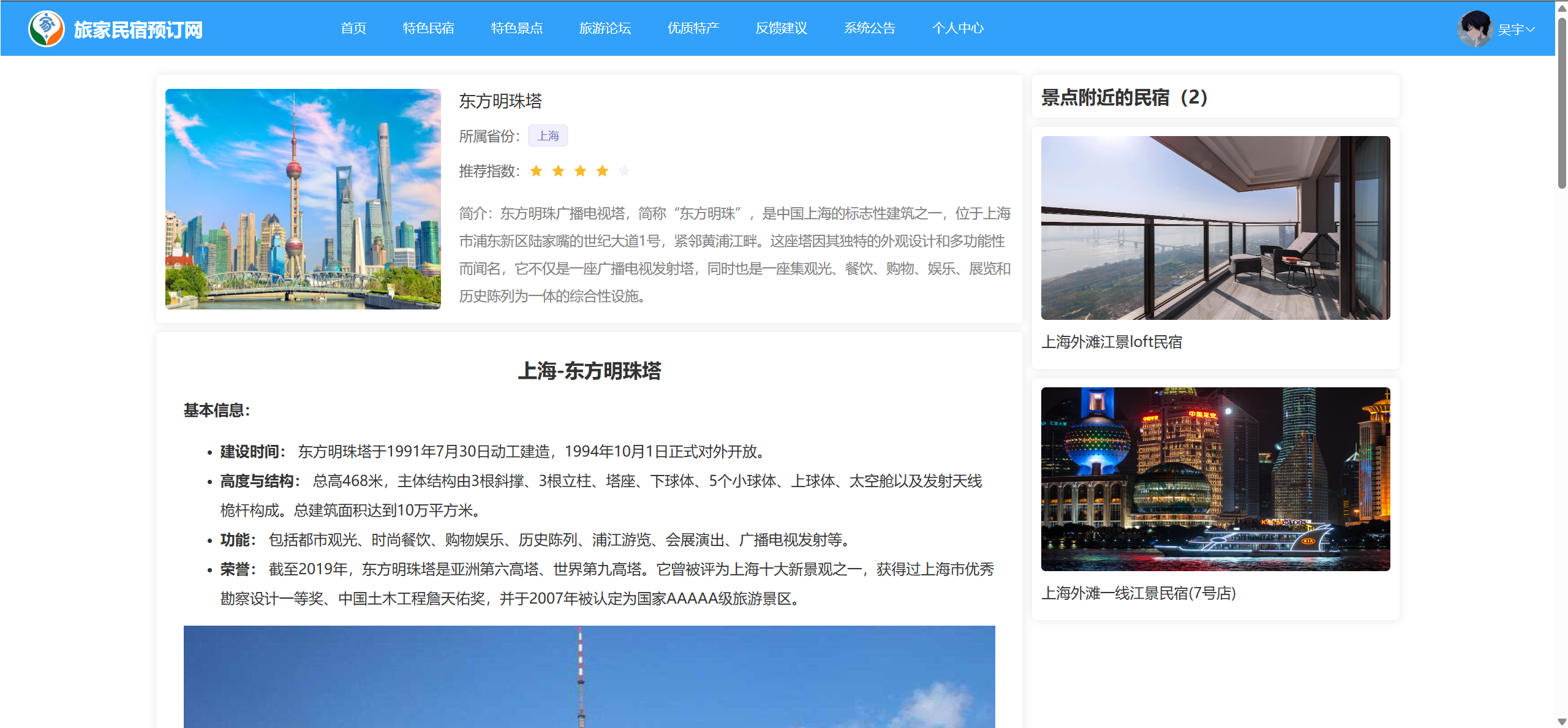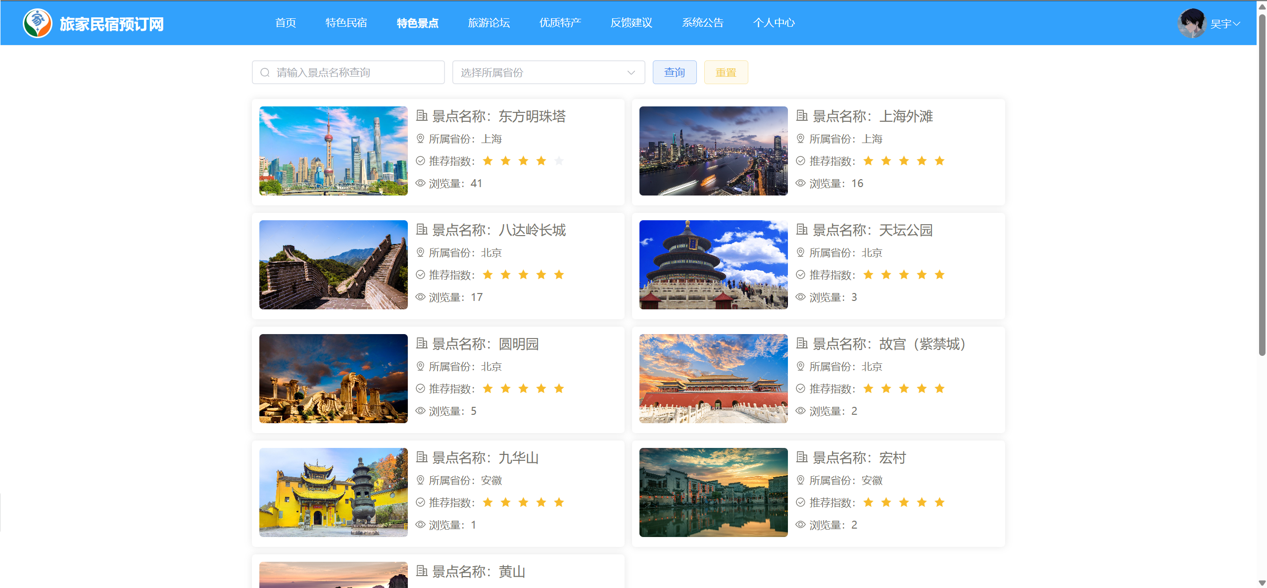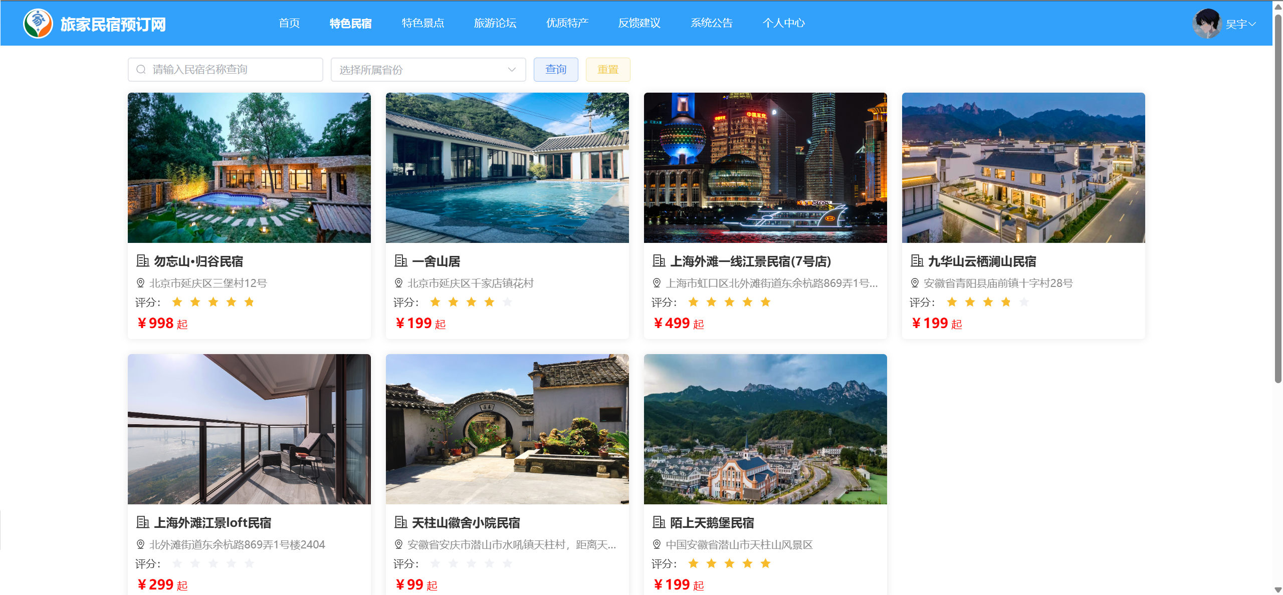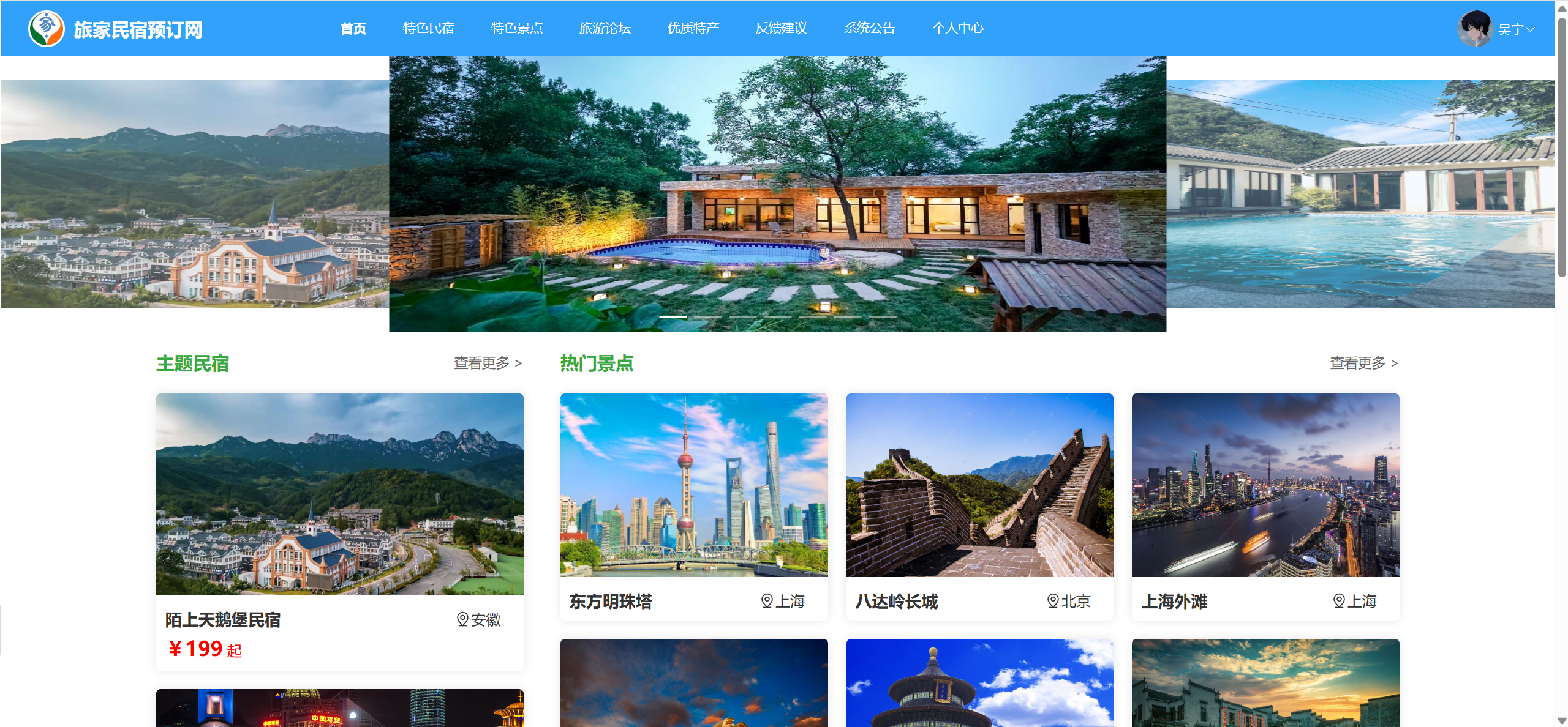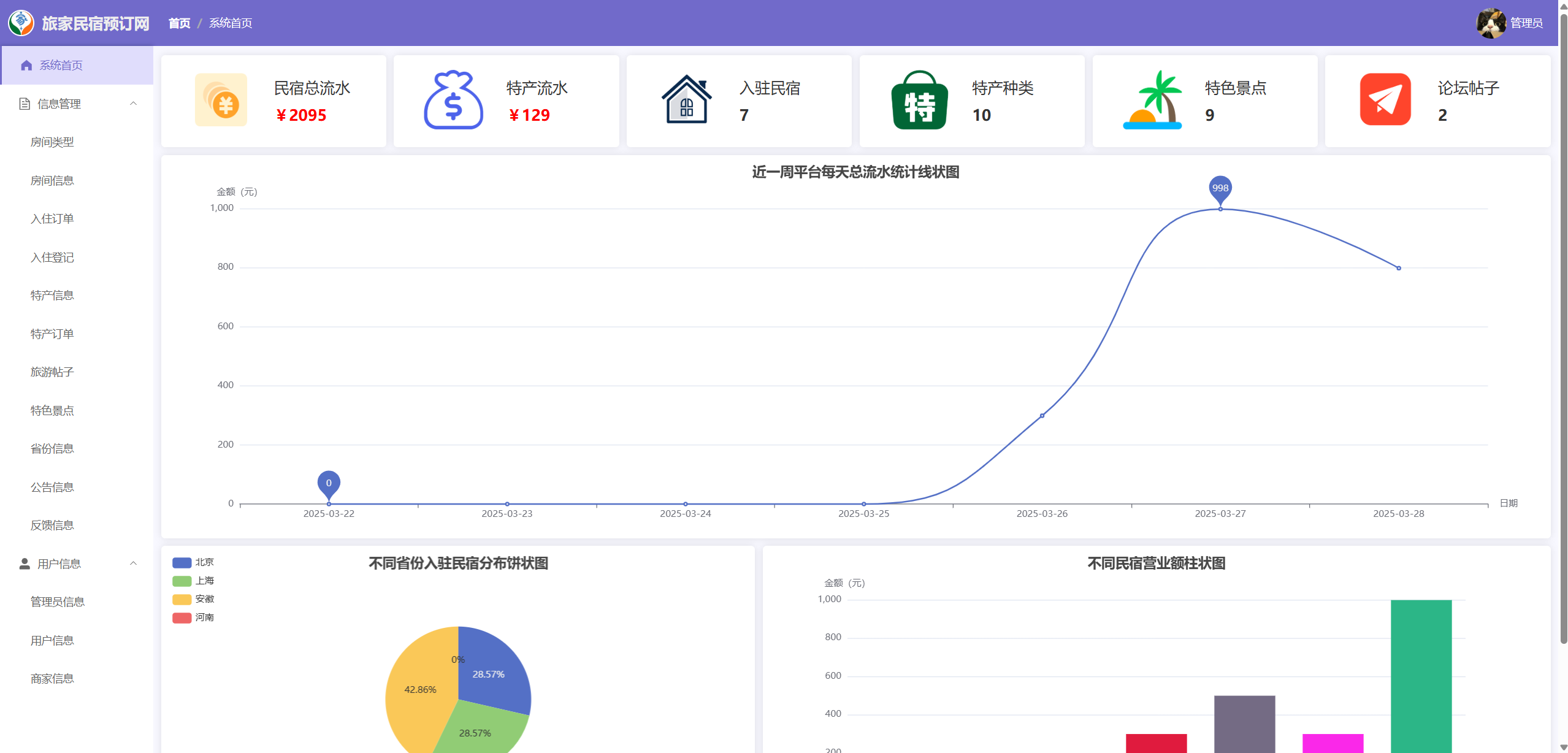 系统首页:查看自己名宿的营业额和民宿房间相关信息统计