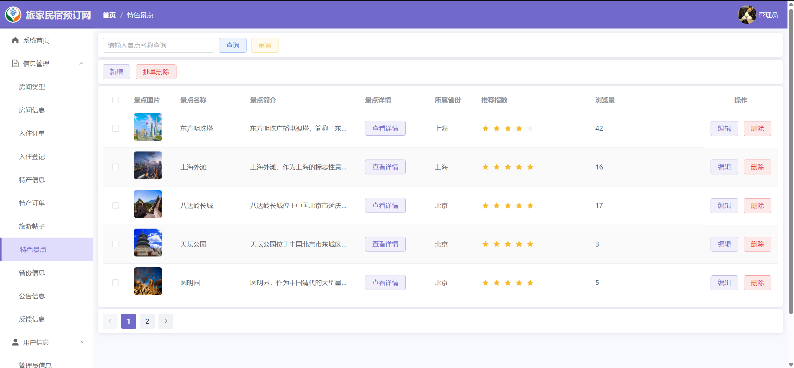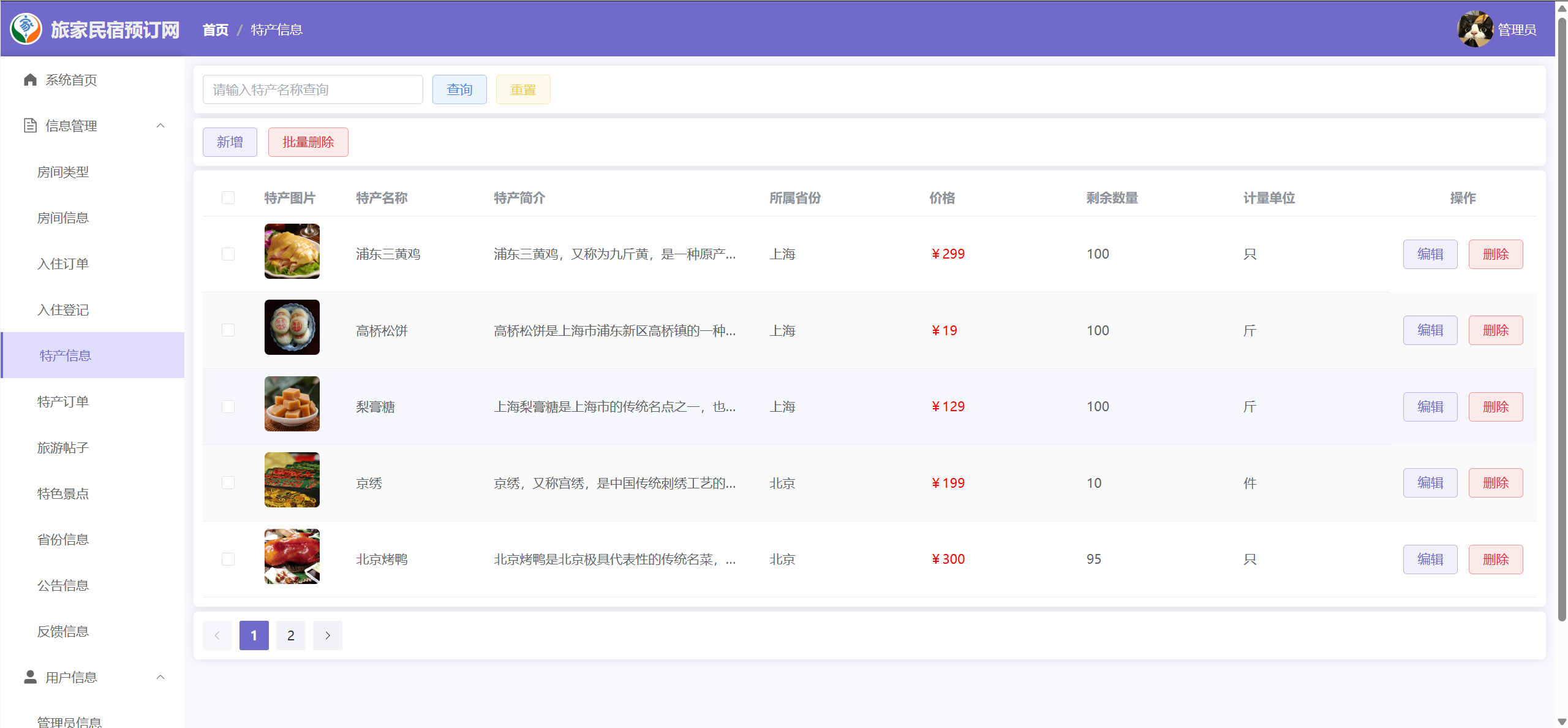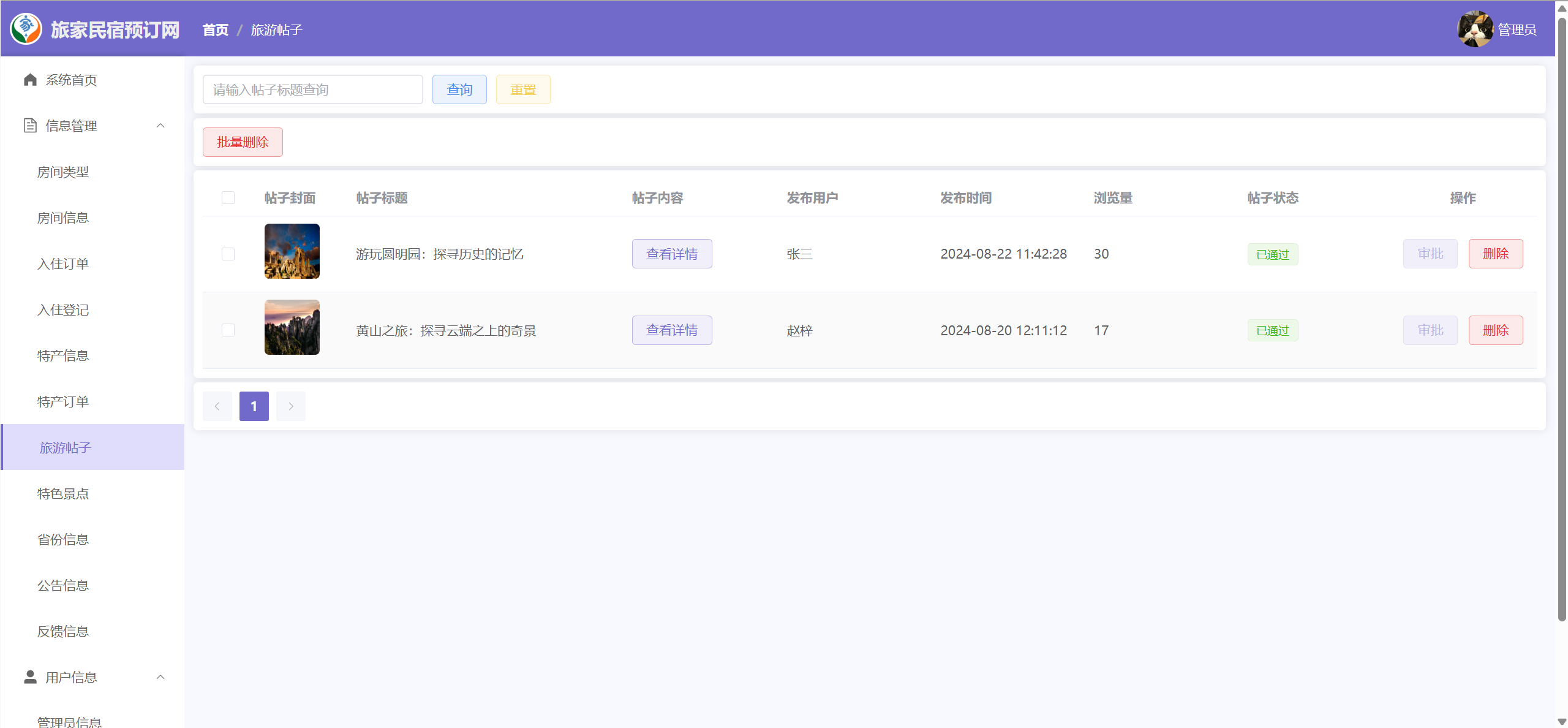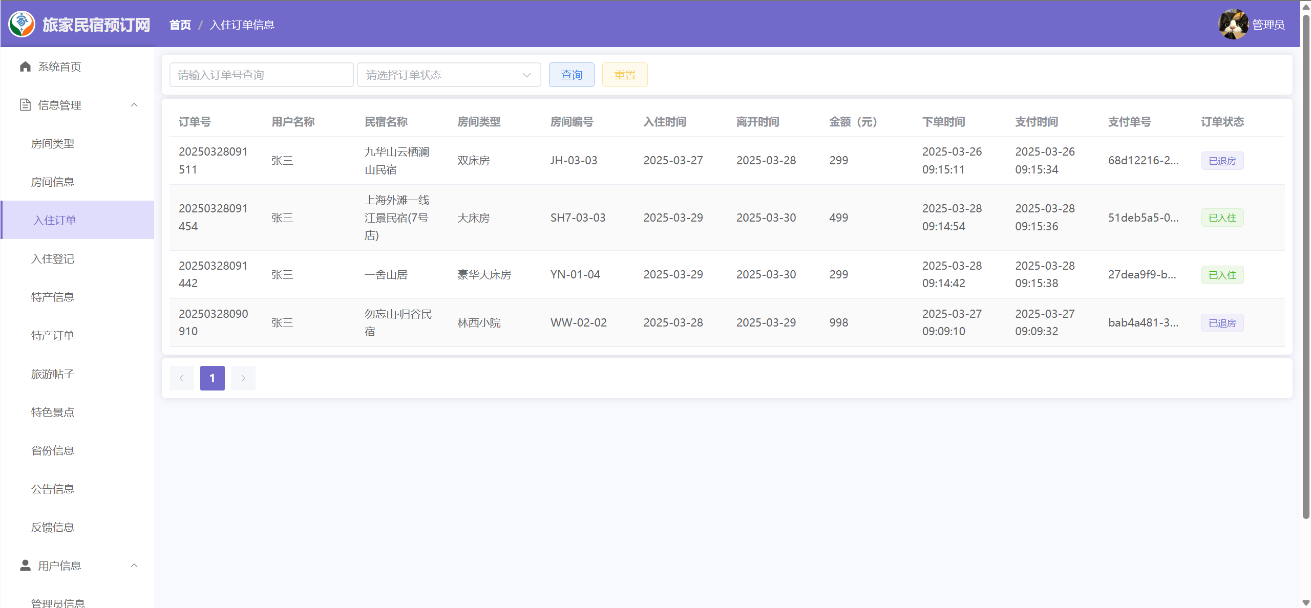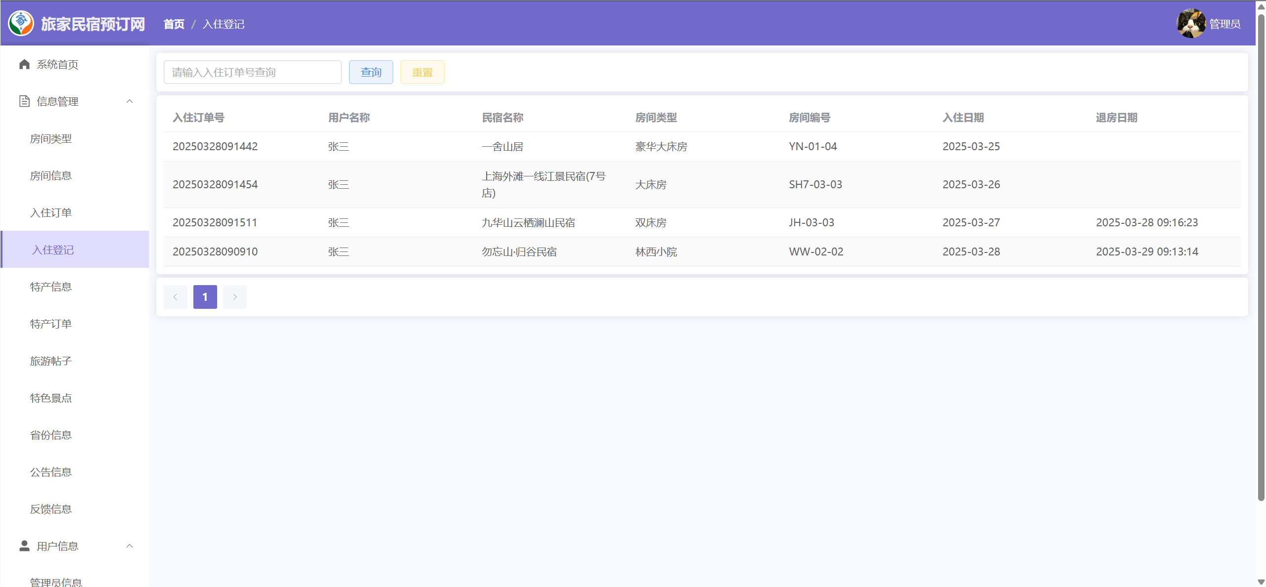 入住登记信息:查看和新增自己民宿的入住登记记录信息