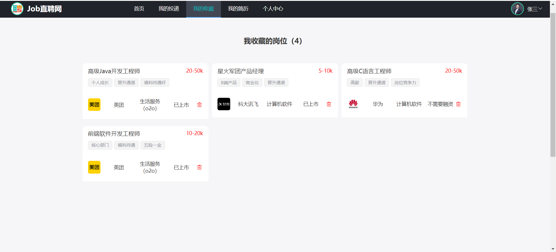 支持收藏自己喜欢的岗位,管理自己收藏的岗位