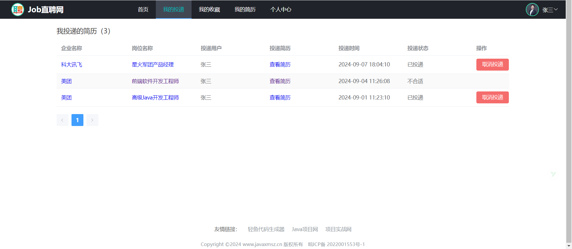 管理自己投递的岗位、取消投递,查看投递状态,及时了解动态