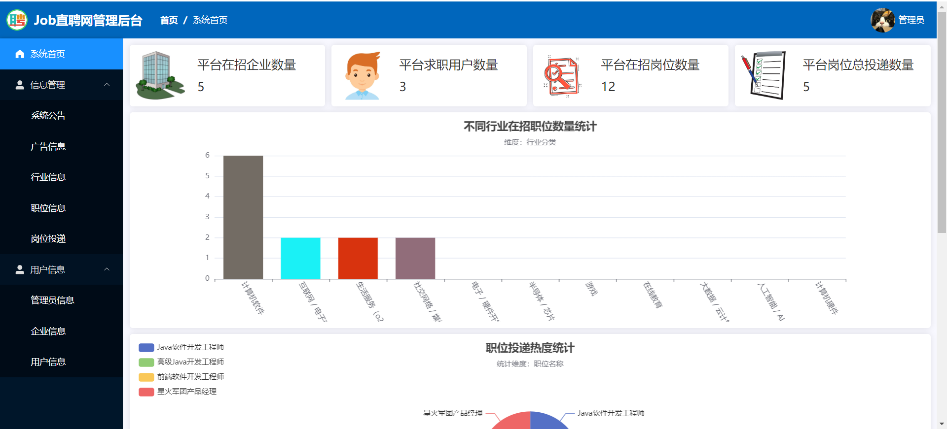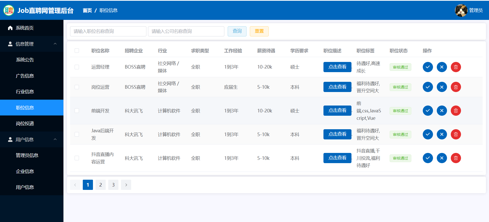 职位信息:管理和审核企业发布的职位信息,审核通过后才可以展示在前台供用户查看